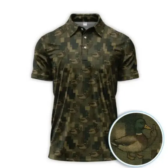 Mallard Duck Camo Polo Shirt for Men Waterfowl Pattern Funny Crazy Golf Outfit Tee