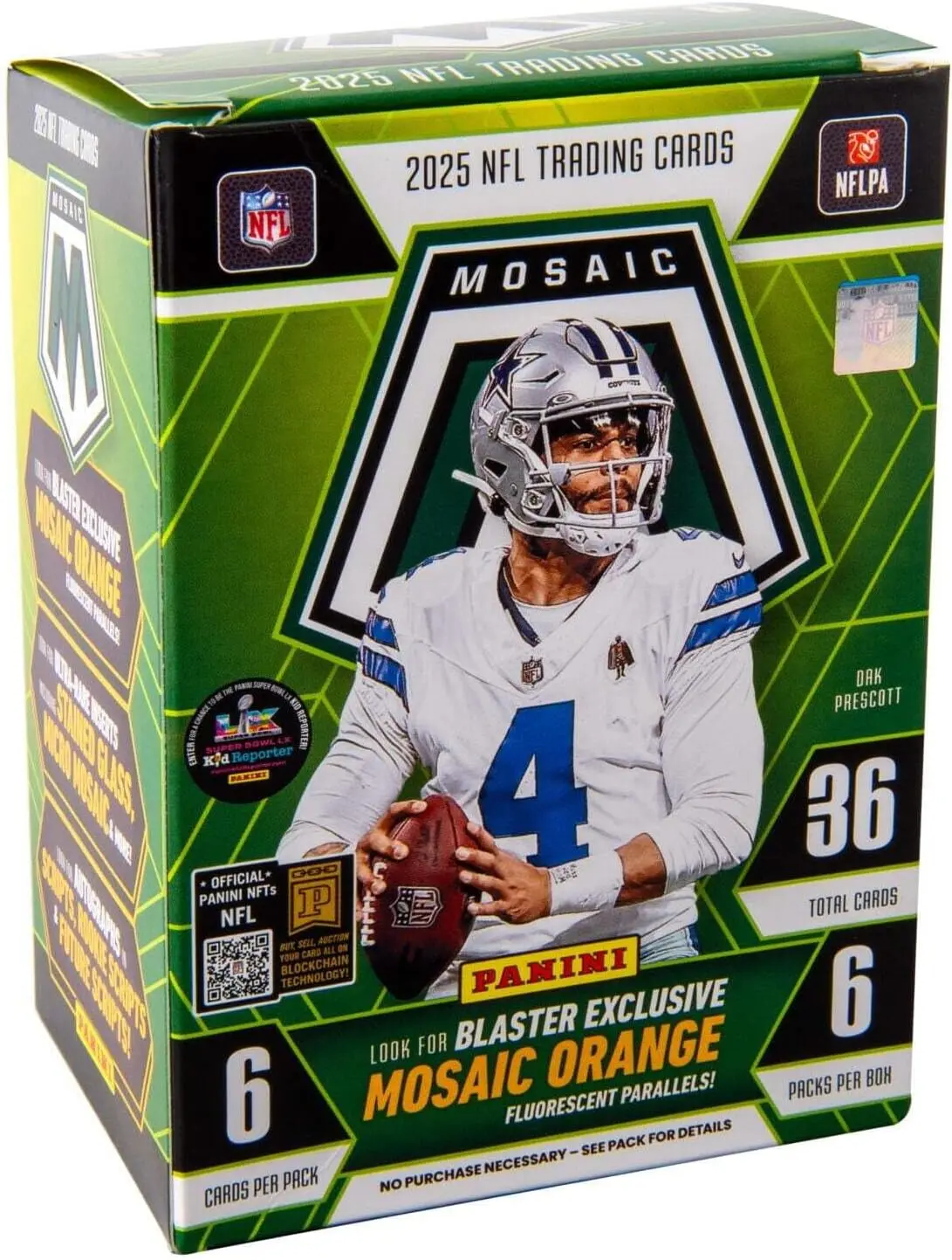 Perfect for collectors, gift-givers, and NFL fans of all ages, the2025–26 Panini Mosaic Football Blaster Boxis an essential addition to any football card collection.