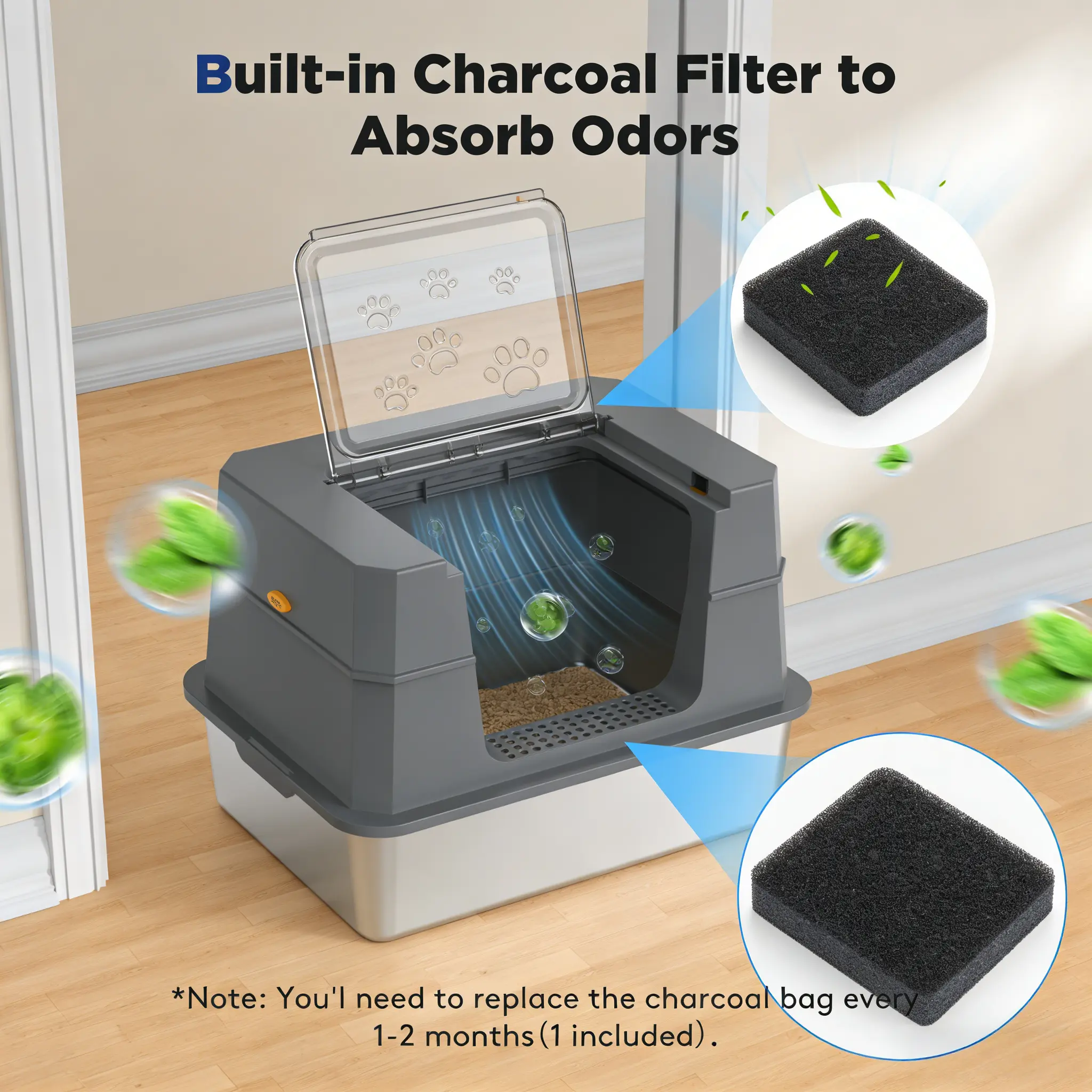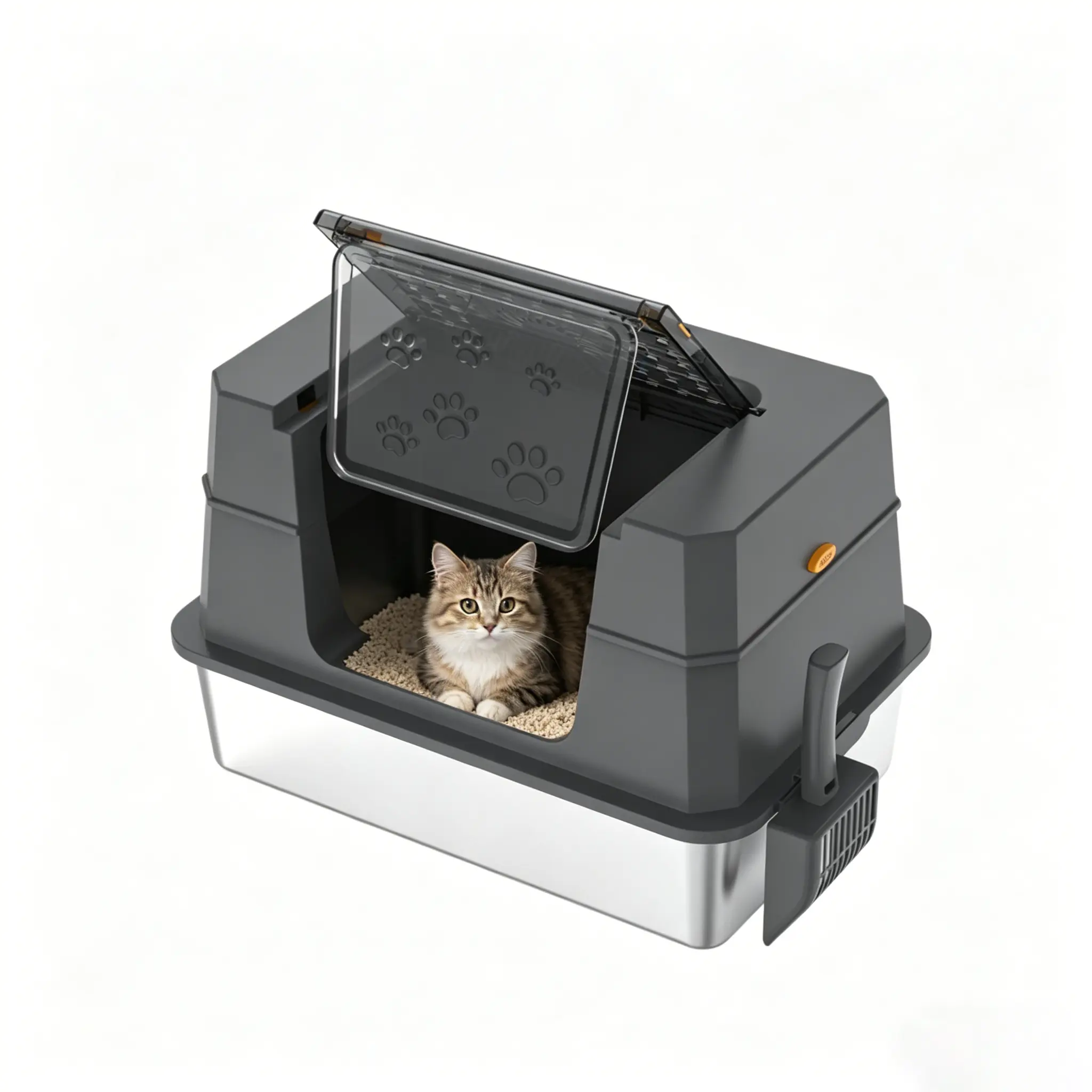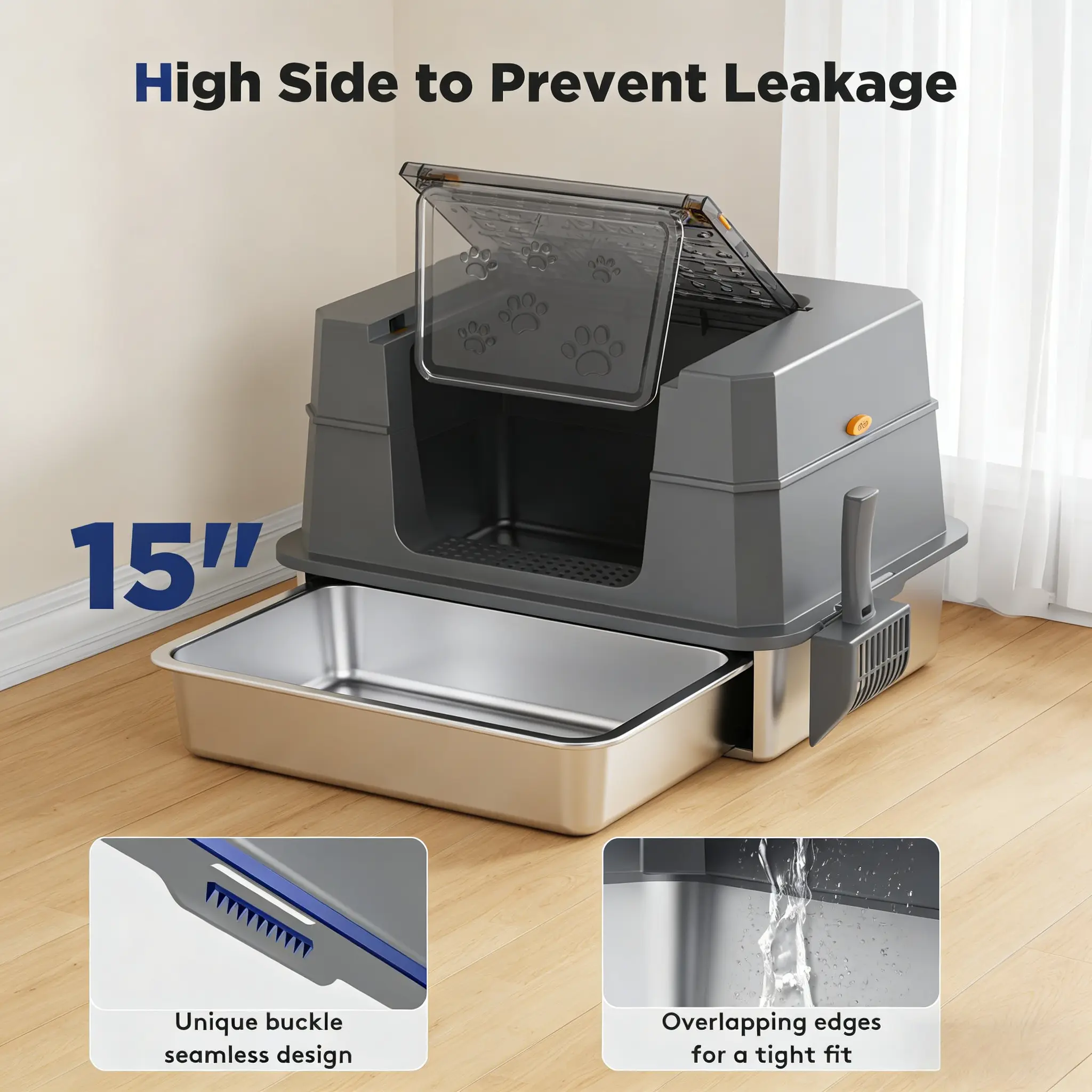No Smell Stainless Steel Cat Litter Box – Rust-Proof, Non-Stick & Easy to Clean Cat Litter Tray