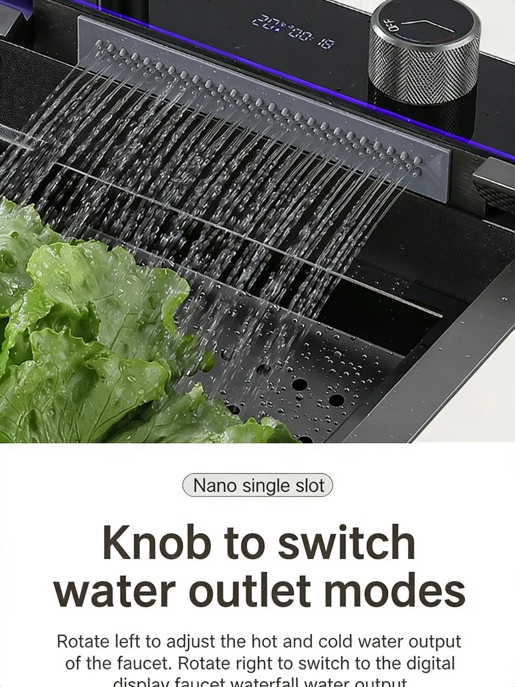 Featuring a dual-knob control system for easier operation even with wet or soapy hands. One knob accurately adjusts water temperature and flow intensity, while the other manages drainage and water switching. The humanized design allows smooth control without cross-contamination, bringing greater convenience to food preparation, dishwashing, and daily cleaning.