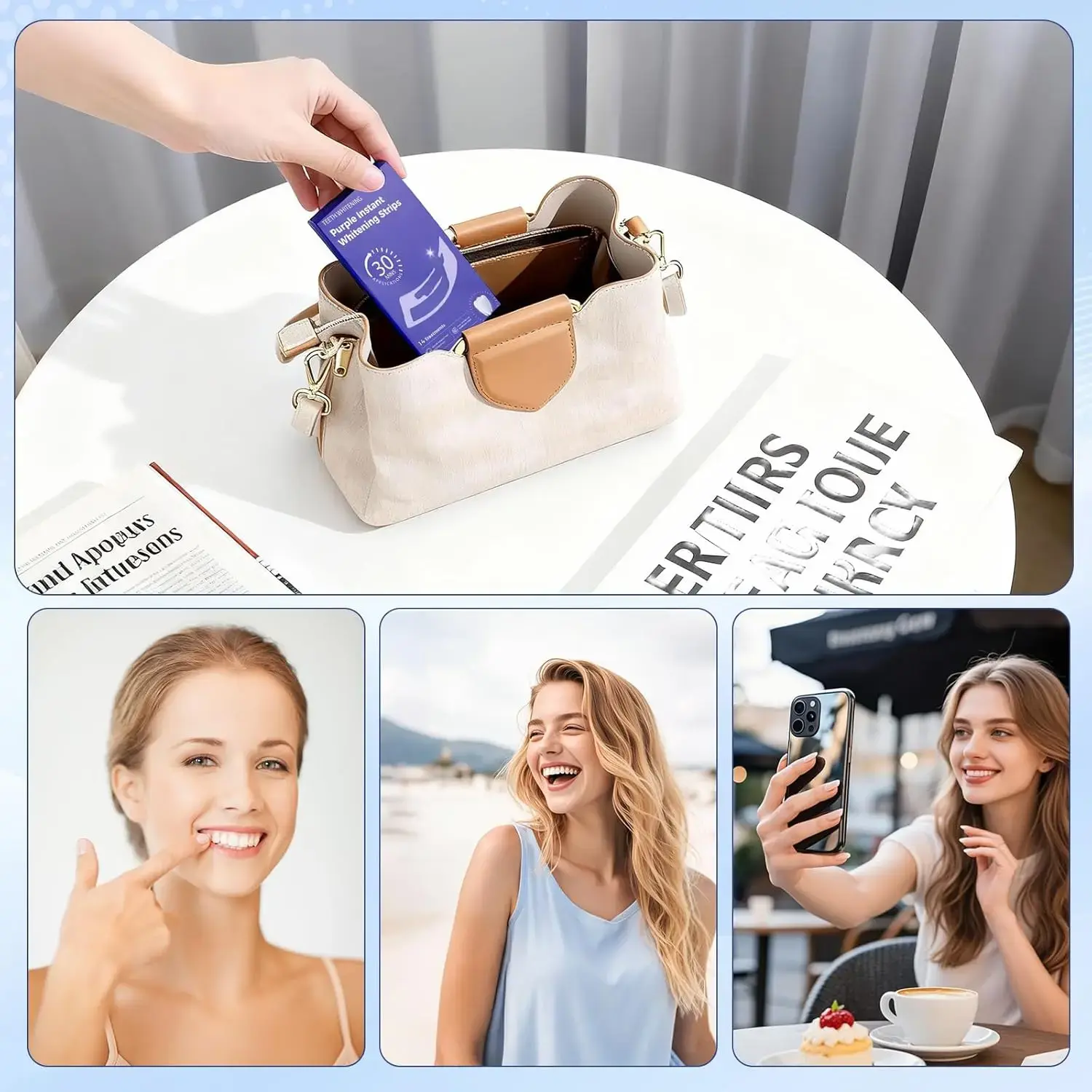 Utilising the principle of purple colour correction, these whitening strips neutralise the dull yellow tones on the surface of your teeth, giving your smile a brighter, more radiant appearance in a short space of time.