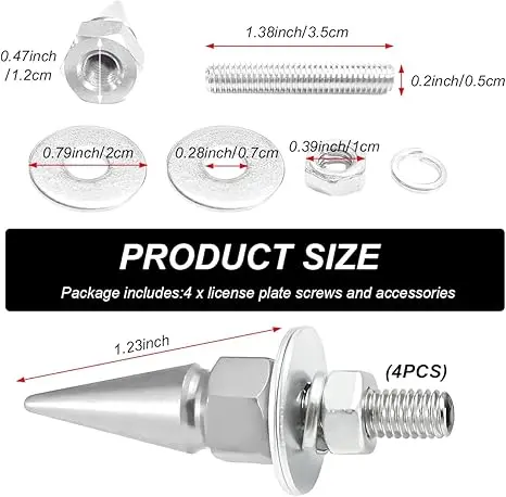 Featuring a unique spike design, these screws add a stylish and distinctive look to your license plate, enhancing the appearance of your car, truck, or motorcycle.