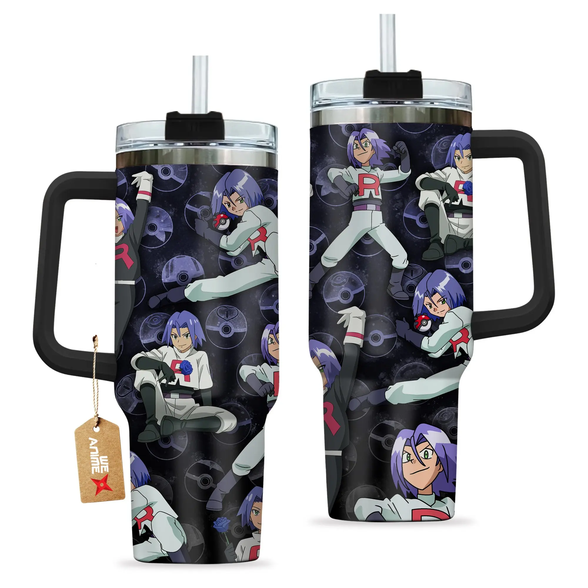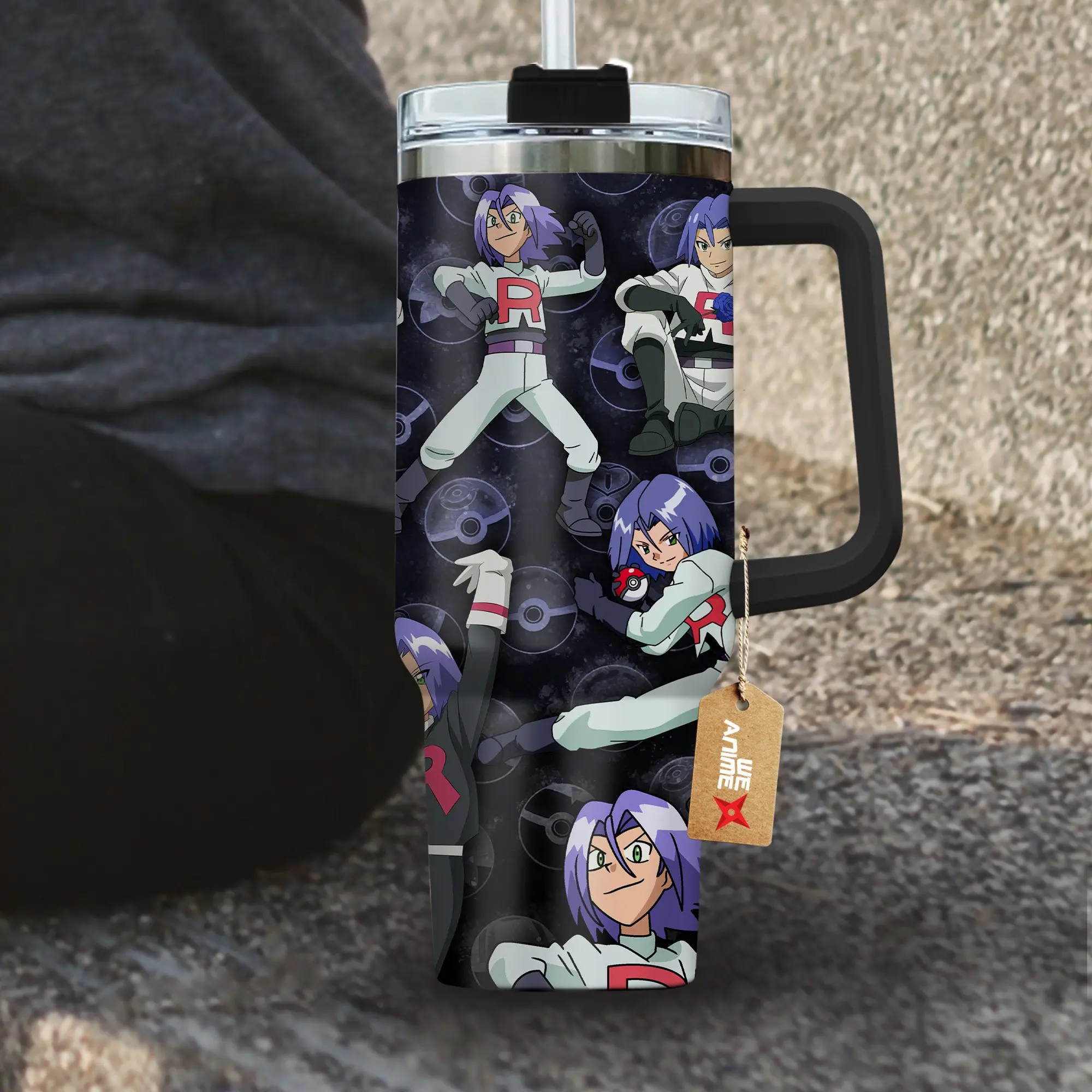 5. STORMMECH- James Kojiro Team Rocket 40oz Handle Tumbler – PKM Stainless Steel Travel Mug, Anime Inspired Vacuum Insulated Cup, Large Iced Coffee Tumbler, Manga Fighter Drinkware, Otaku Gift for Him Her
