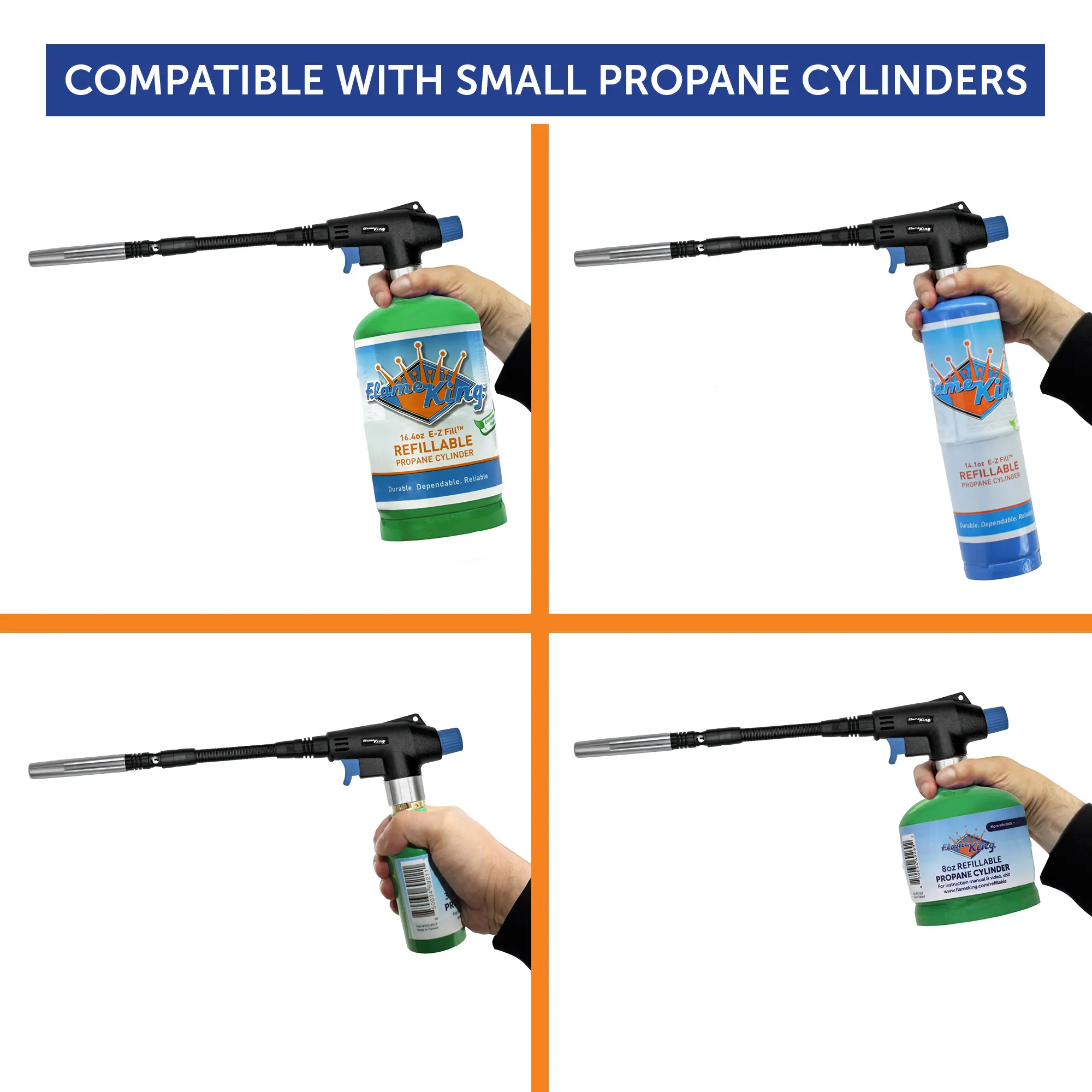 ·SECURE CGA600 CONNECTION: Fits perfectly with the Flame King's 1/4LB, 1/2LB and 1LB Propane Cylinders (sold separately); also works with popular fuel gases - standard 1lb Propane cylinders, MAPP, and MAP-PRO
