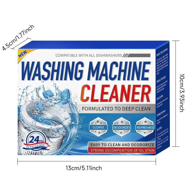12/24pcs Washing Machine Cleaner Descaler 12 Pack - Deep Cleaning Tablets For HE Front Loader & Top Load Washer, Septic Safe Eco-Friendly Deodorizer, Clean Inside Drum And Laundry Tub Seal - 12 Month Supply Multifunction Strong Deodorization