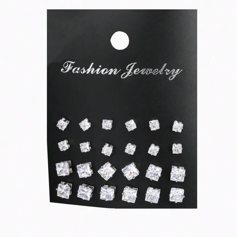 24-72pcs Stud Earrings Set for Men Geometric Circle Square Heart Fashion Jewelry