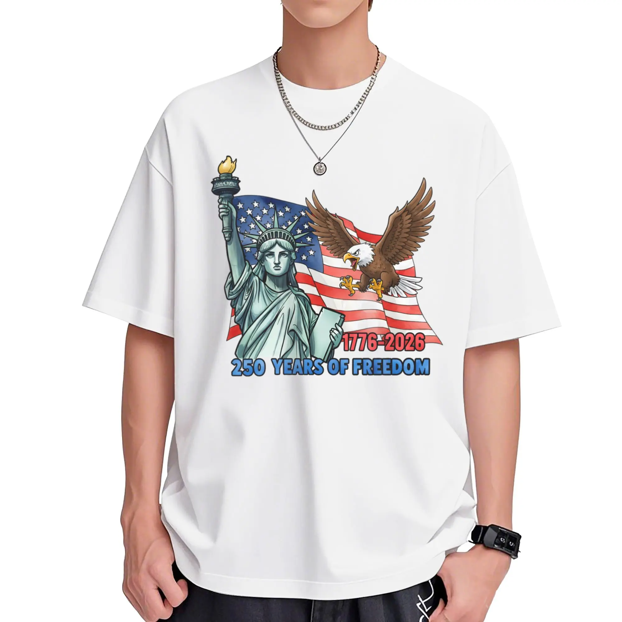 This shirt is a tribute to freedom and national pride. It's a meaningful piece for those who cherish American heritage. Wear it to celebrate and honor the nation's journey.