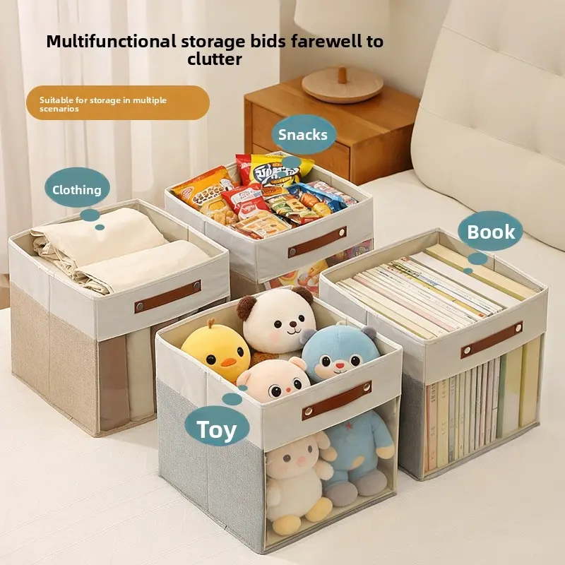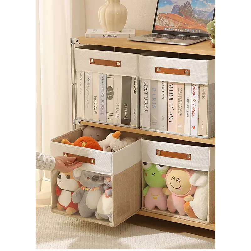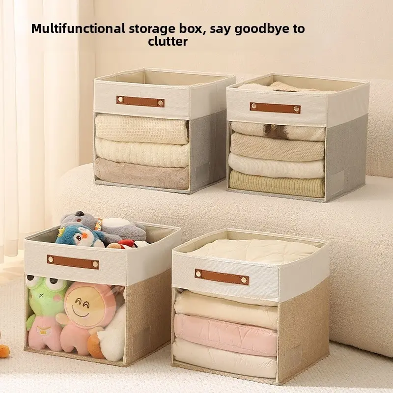 Square Storage Box with Clear Window, Non-Woven Fabric Organizer Bins, Visible Clothes Storage Container, Multifunctional Collapsible Basket for Home Closet