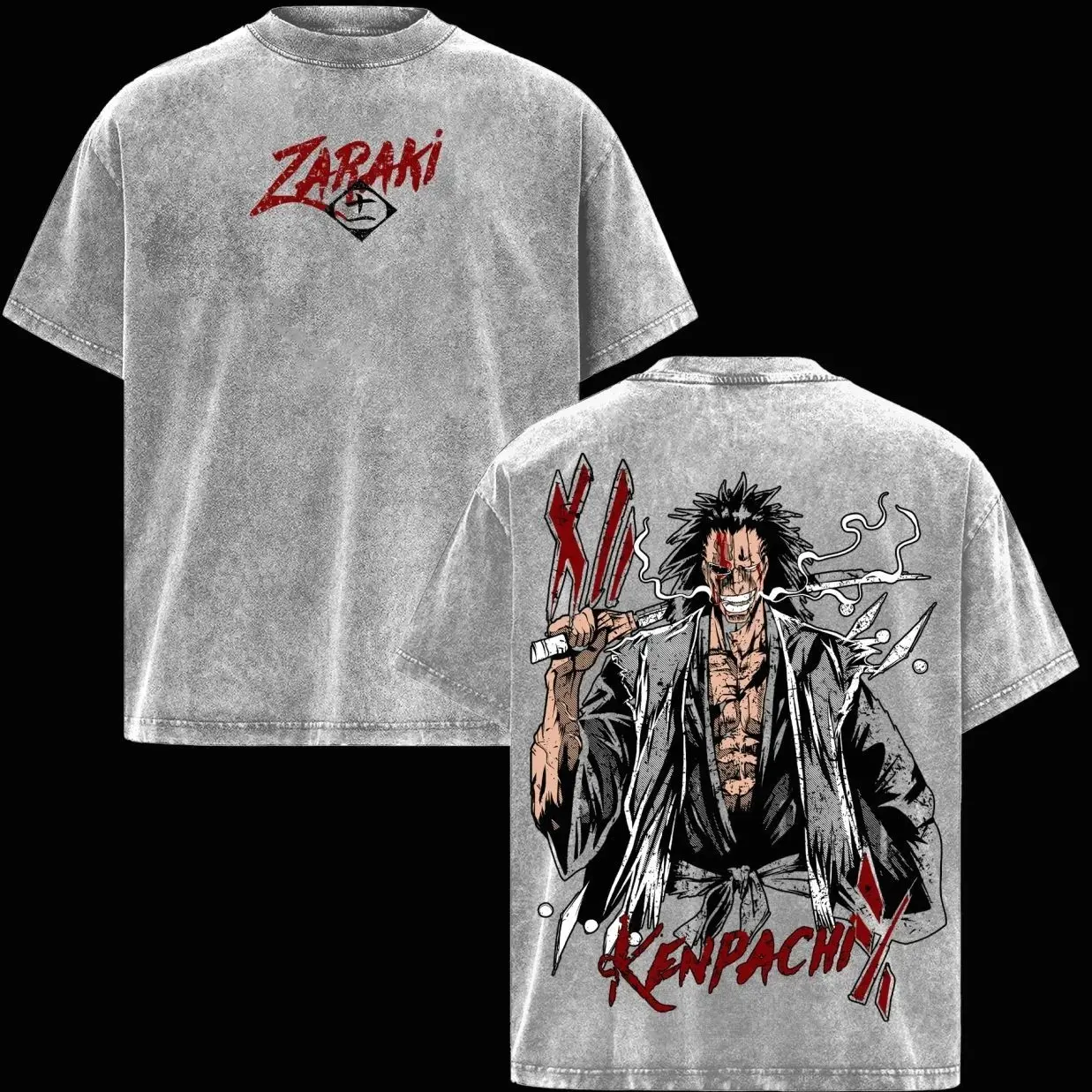 Kenpachi Zaraki T-Shirt – Bleach Vintage Washed Oversized Anime Graphic Tee, Dark Streetwear Aesthetic Top, Acid Wash Soft Cotton Shirt, Casual Unisex Apparel, Gift for Bleach Fans 8GB