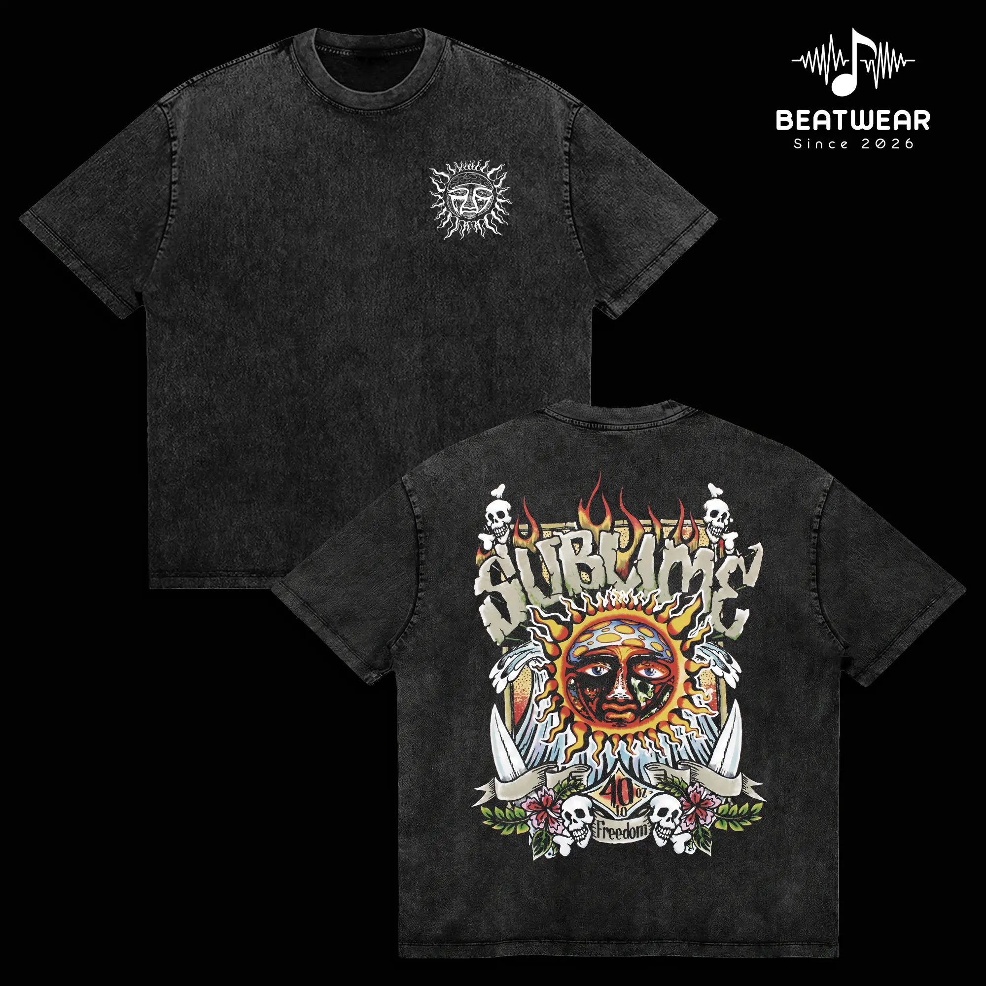 Retro Punk-Style Sublime Band T-Shirt Featuring Skull and Sun Design Made from Soft Breathable Fabric for Comfortable Wear Ideal for Concerts Street Style or Showcasing Your Personality in the Urban Jungle Unisex T-Shirt