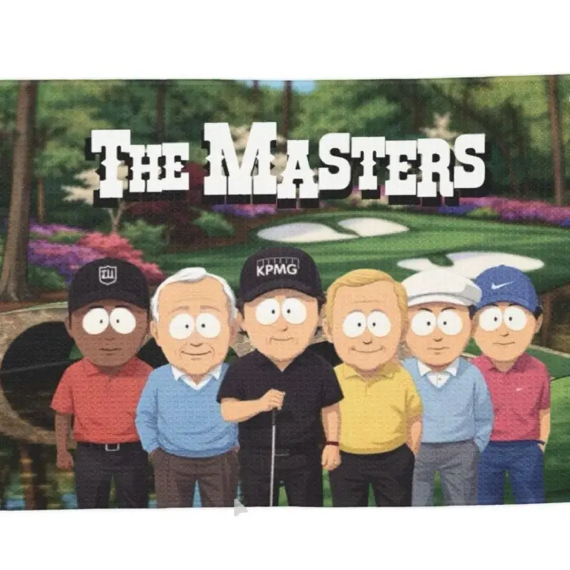 Enjoy this custom design featuring your favorite golfers as Southpark characters: Tiger Woods, Arnold Palmer, Rory McIlroy, Phil Mickelson, Jack Nicklaus, and Ben Hogan. This golf towel blends practical performance with playful style. Made from a durable microfiber blend, it dries quickly and resists stretching, so it stays reliable through long rounds and travel. The towel’s compact 16" x 24" size tucks easily into a bag, clips to a cart or bag with its gold grommet and ring, and wipes clubs, balls, and hands without leaving lint. Lightweight and highly absorbent, it’s built to live in your golf bag, on a boat, or clipped to a backpack for weekend adventures.