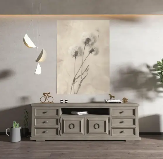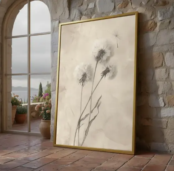 Elegant Dandelion Print Canvas, Minimalist Botanical Wall Art, Neutral Boho Wall Decor, Scandinavian Farmhouse Canvas