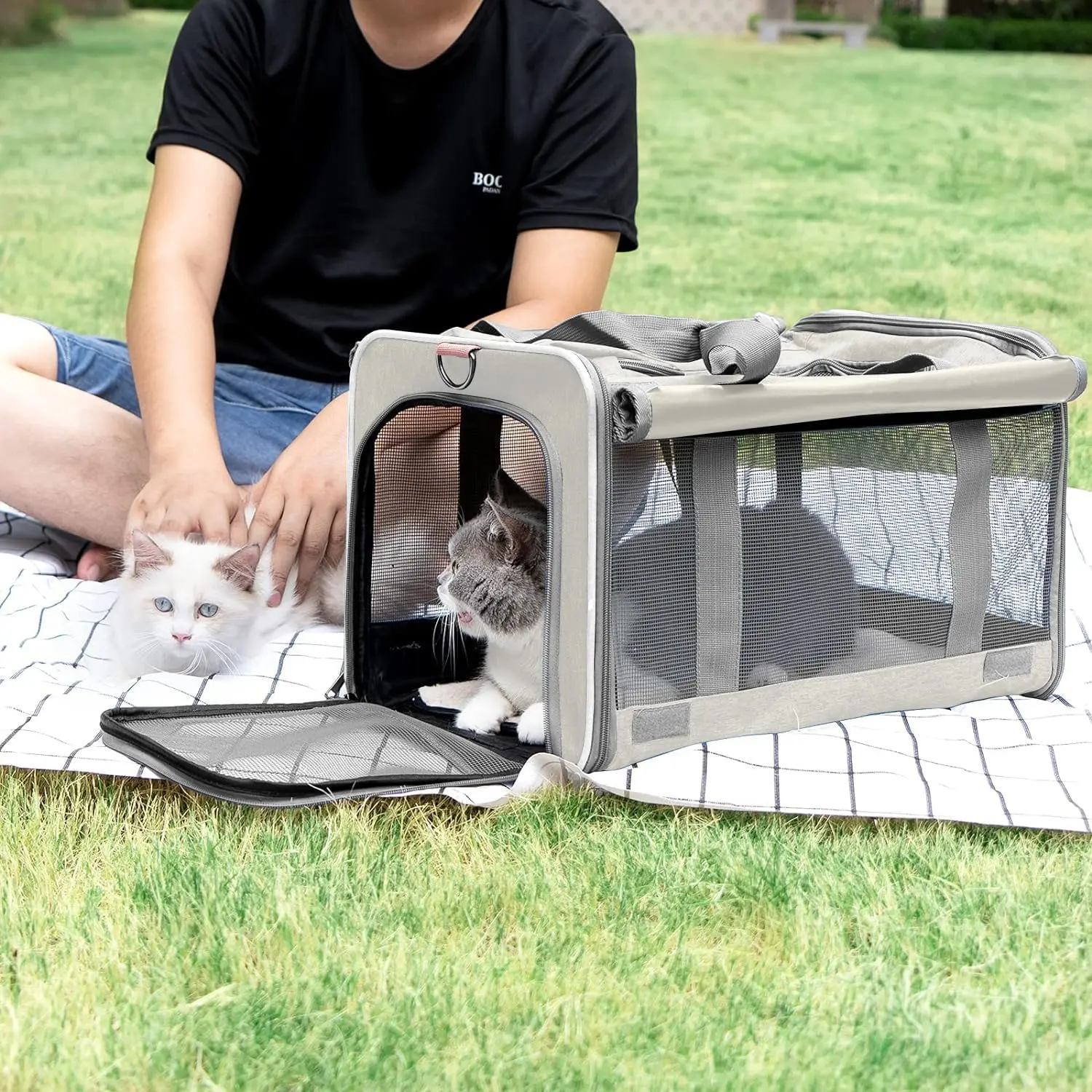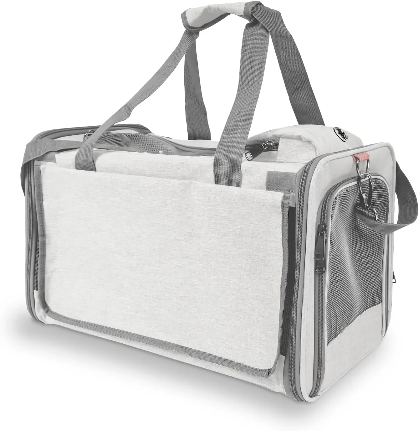To prevent the carrier from being opened inside by pets, we change the zippers into