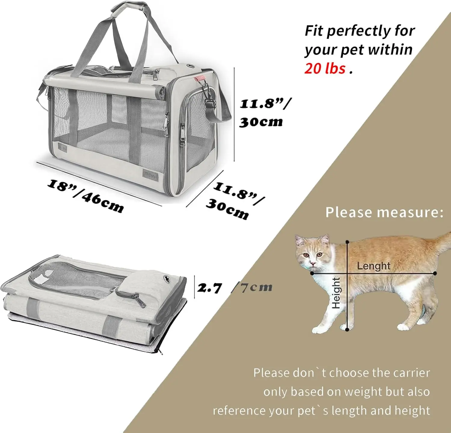 Larger Size pet carrier for medium cats, large cats or small dogs up to 20 lbs