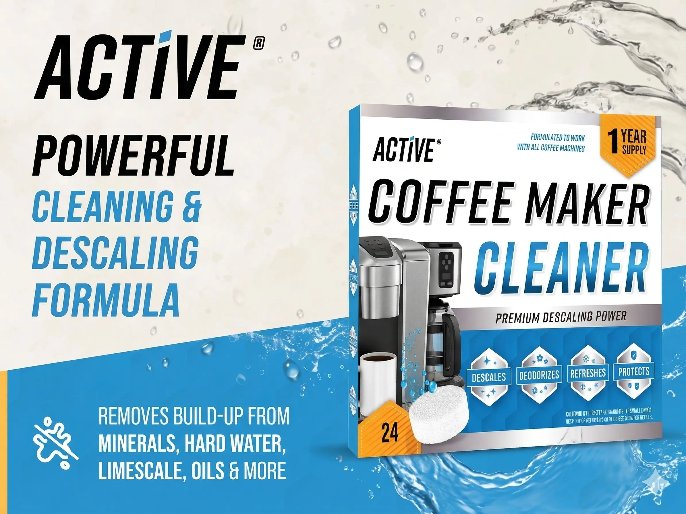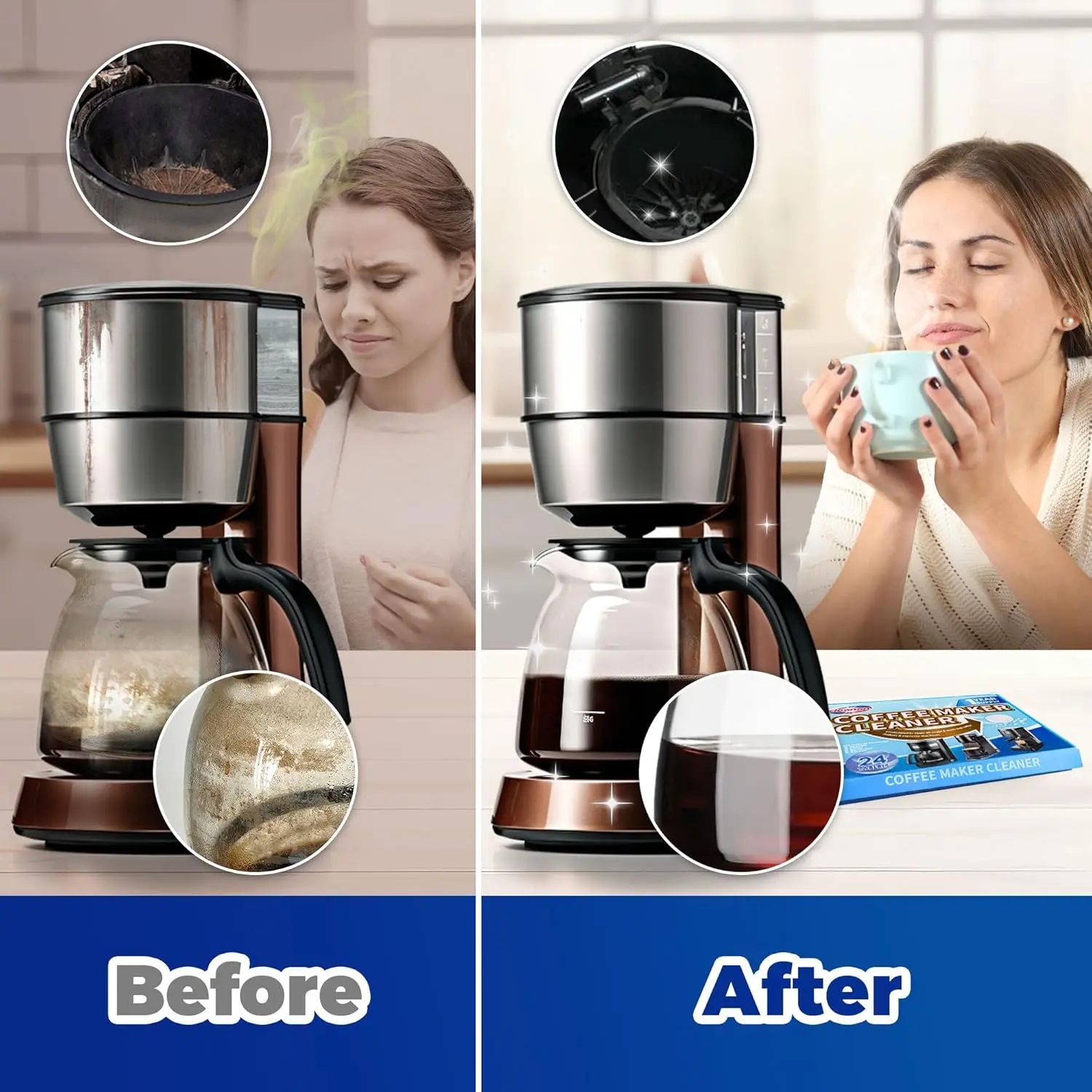 Keep your coffee machines in pristine condition with our Coffee Machine Cleaner. This pack includes 24 tablets, designed to deep clean and descale all coffee makers, coffee pots, drip coffee machines, and espresso machines.