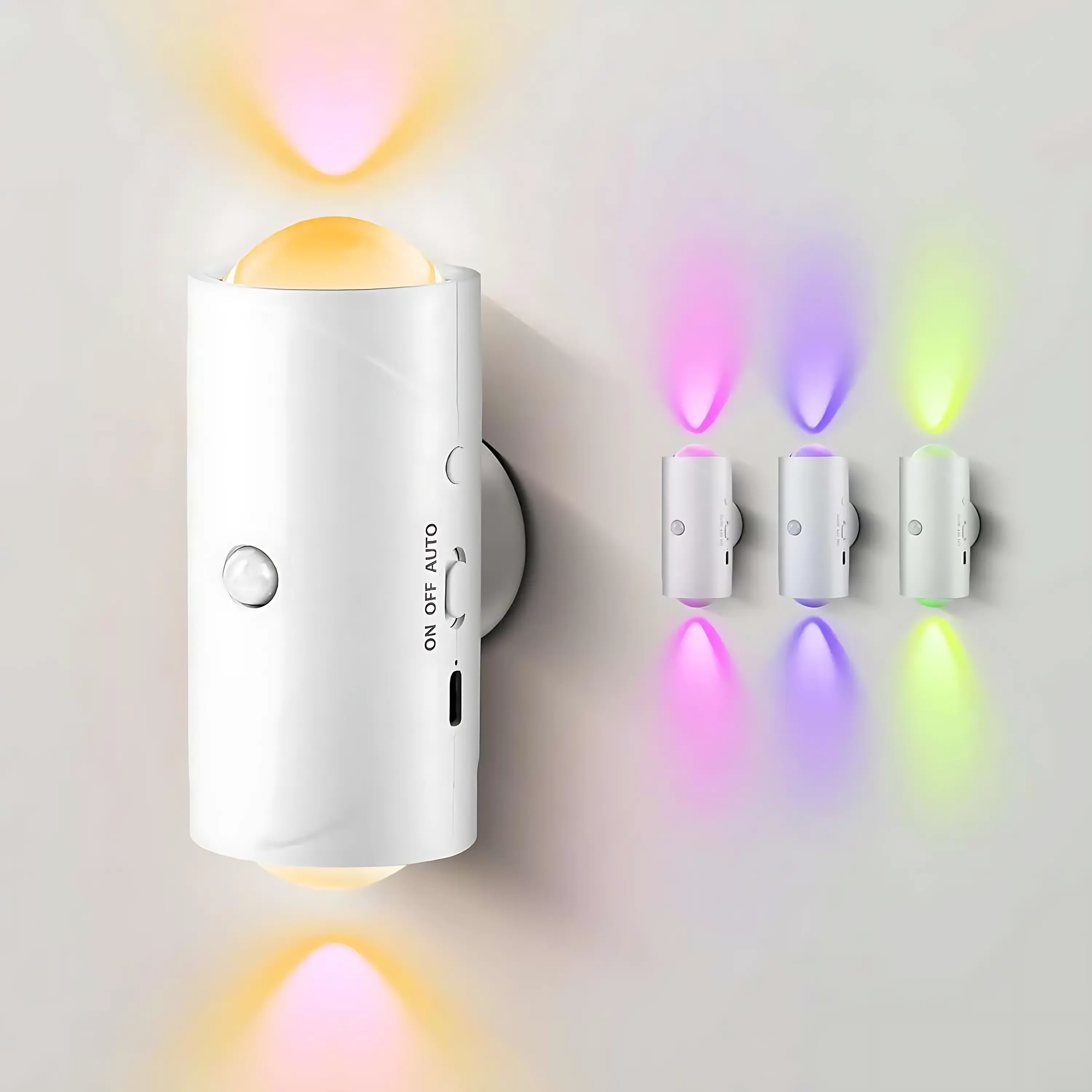 USB rechargeable smart LED night light with motion sensor, RGB gradient dimmable wall lamp, magnetic step lamp for bedroom, hallway, desk, stairs, or bathroom — indoor ambient lighting, no plug required, energy-saving, modern room decor
