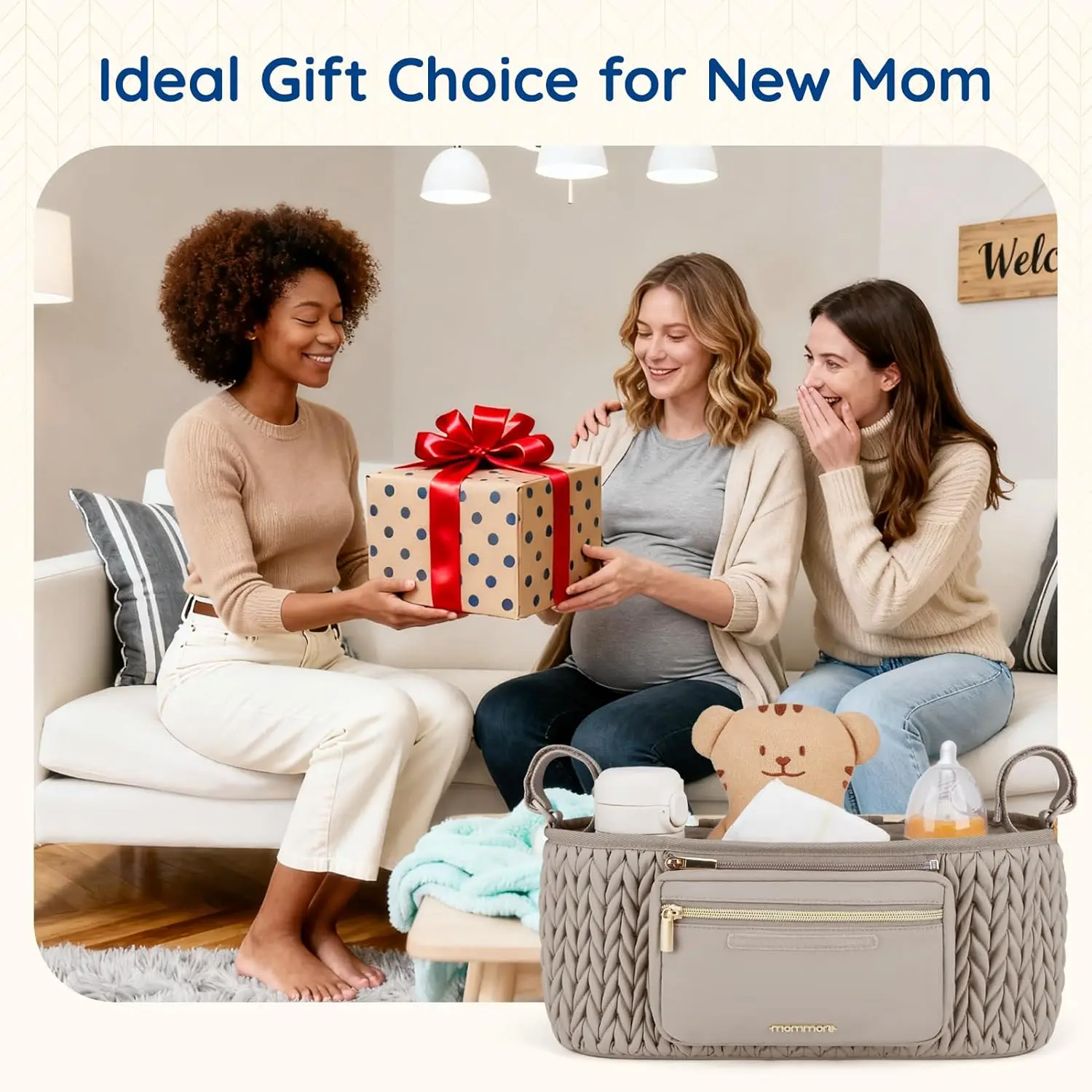 · Can this baby stroller caddy holds 17oz bottles? Yes, the organizer has 2 insulated cup holders, it can also fit coffee cup, water bottle, sippy cup or baby bottle