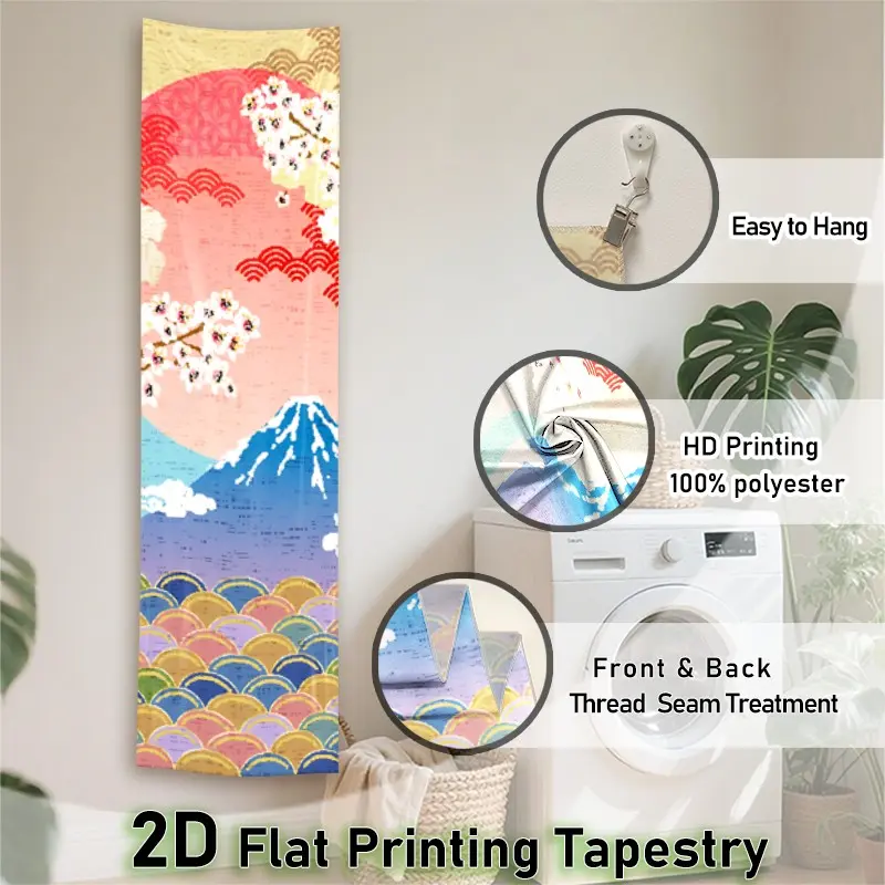 Mount Fuji Scenic Vertical Tapestry, Traditional Japanese Seigaiha Wave Patterns, Wall Hanging Tapestry for Bedroom Living Room, Polyester Tapestries