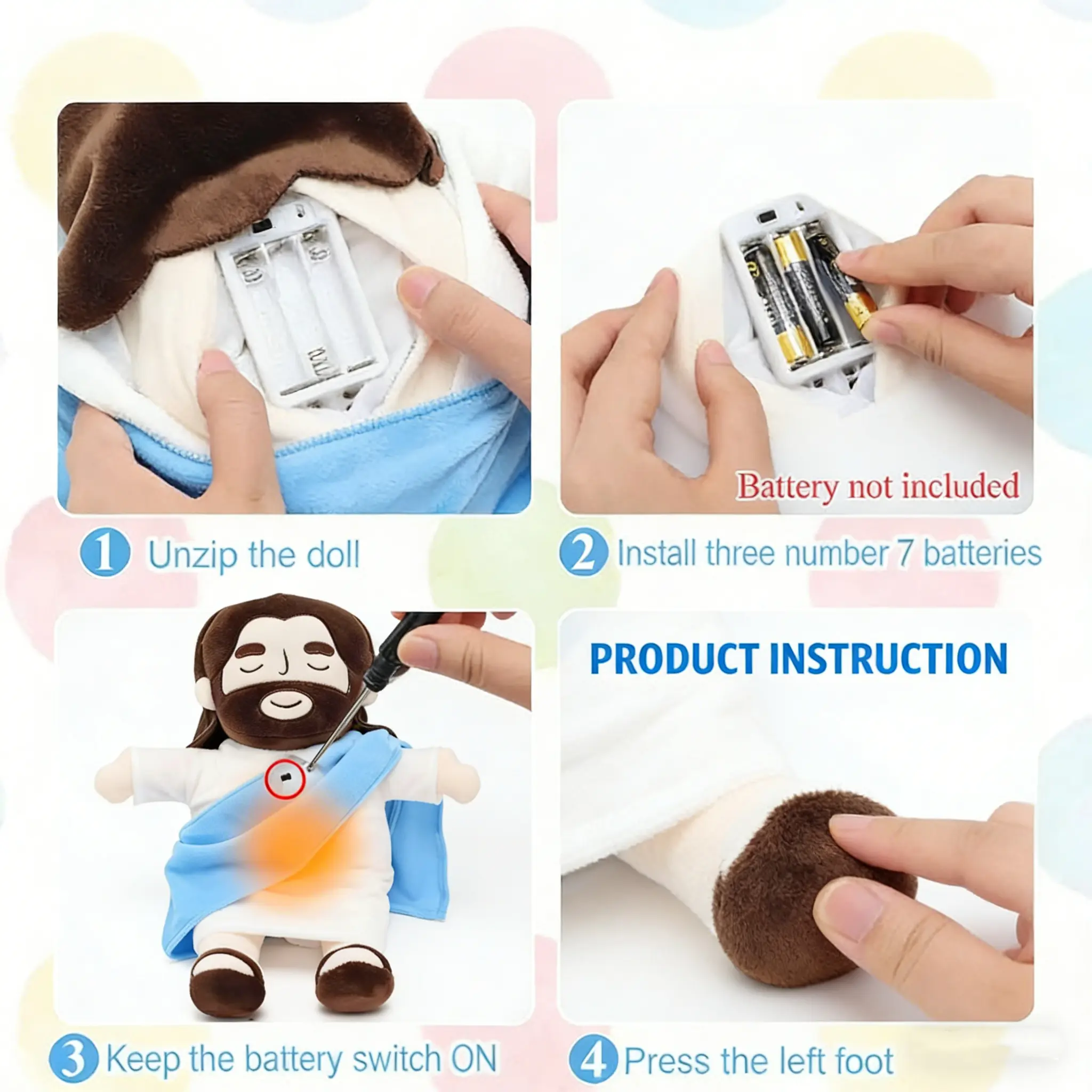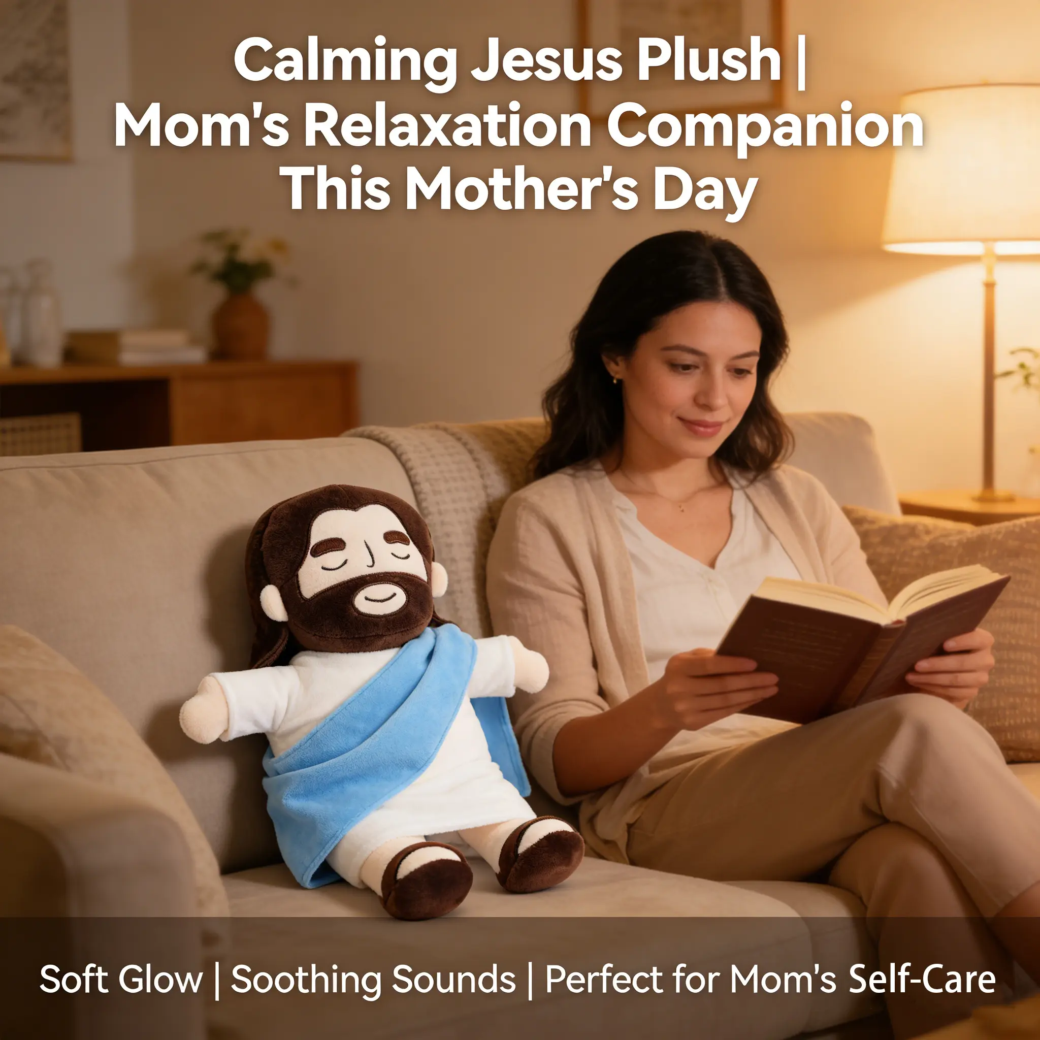 Jesus Breathing Light-Up Toy (4-speed movement), 15inches, soft and adorable plush toy, suitable for children andadults, religious Thanksgiving Easter Christian baptism gift,Easter decoration, addictive toy, Thanksgiving Easter gift.