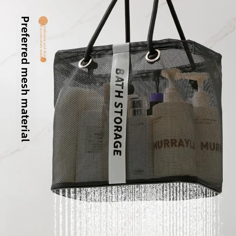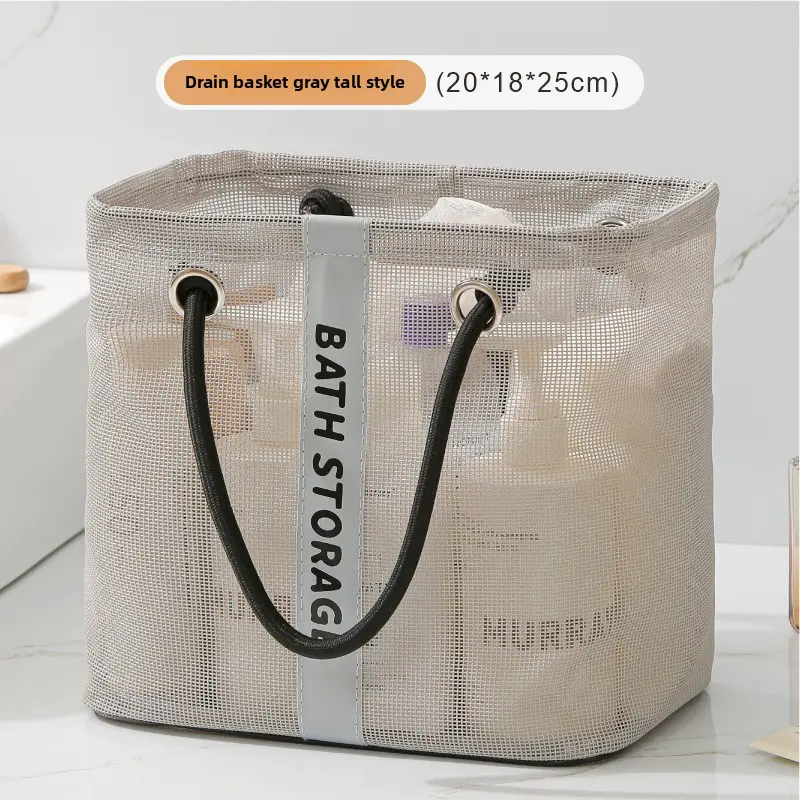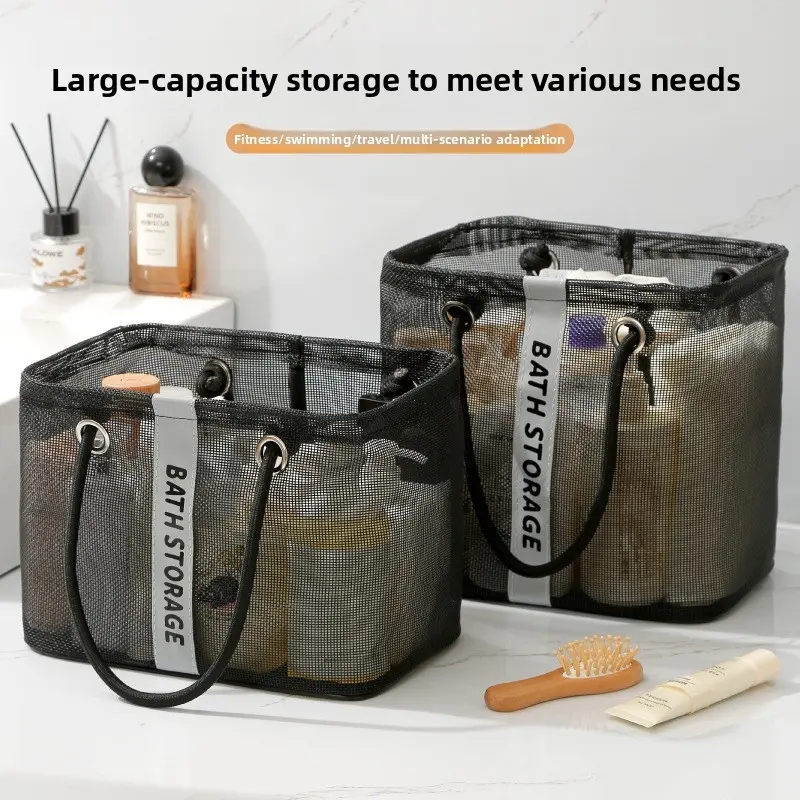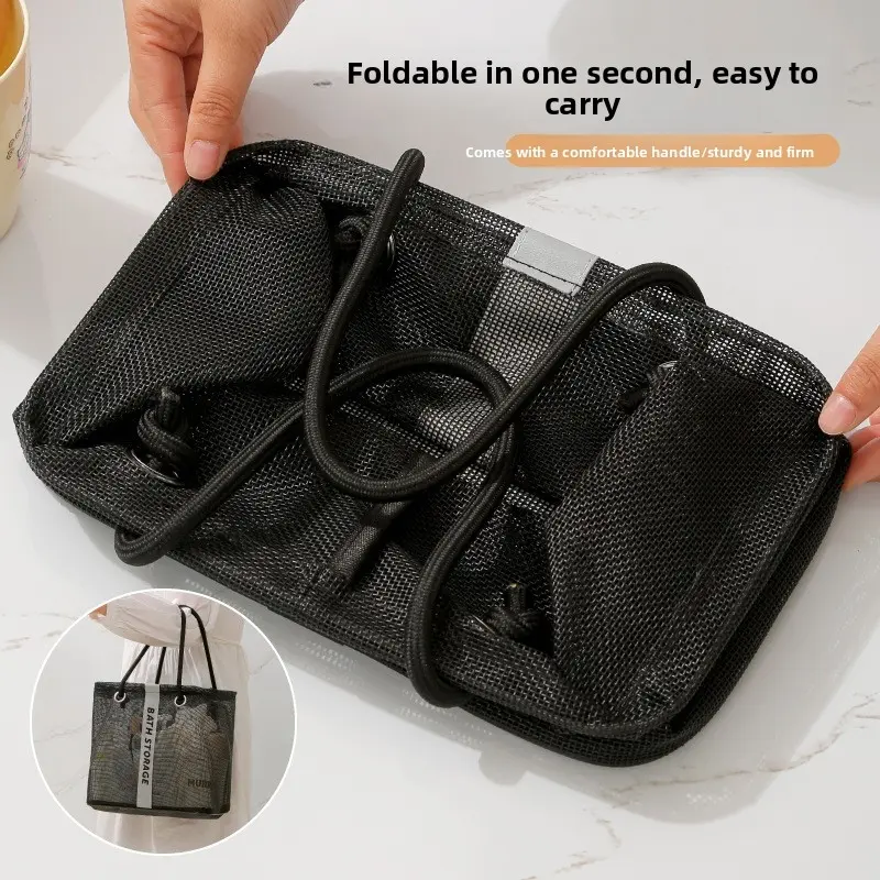 Mesh Toiletry Bag for Travel, Foldable Cosmetics Organizer Basket with Breathable Net, Large Capacity Shower Caddy for Gym Swimming, Quick Drying Drainage Holder