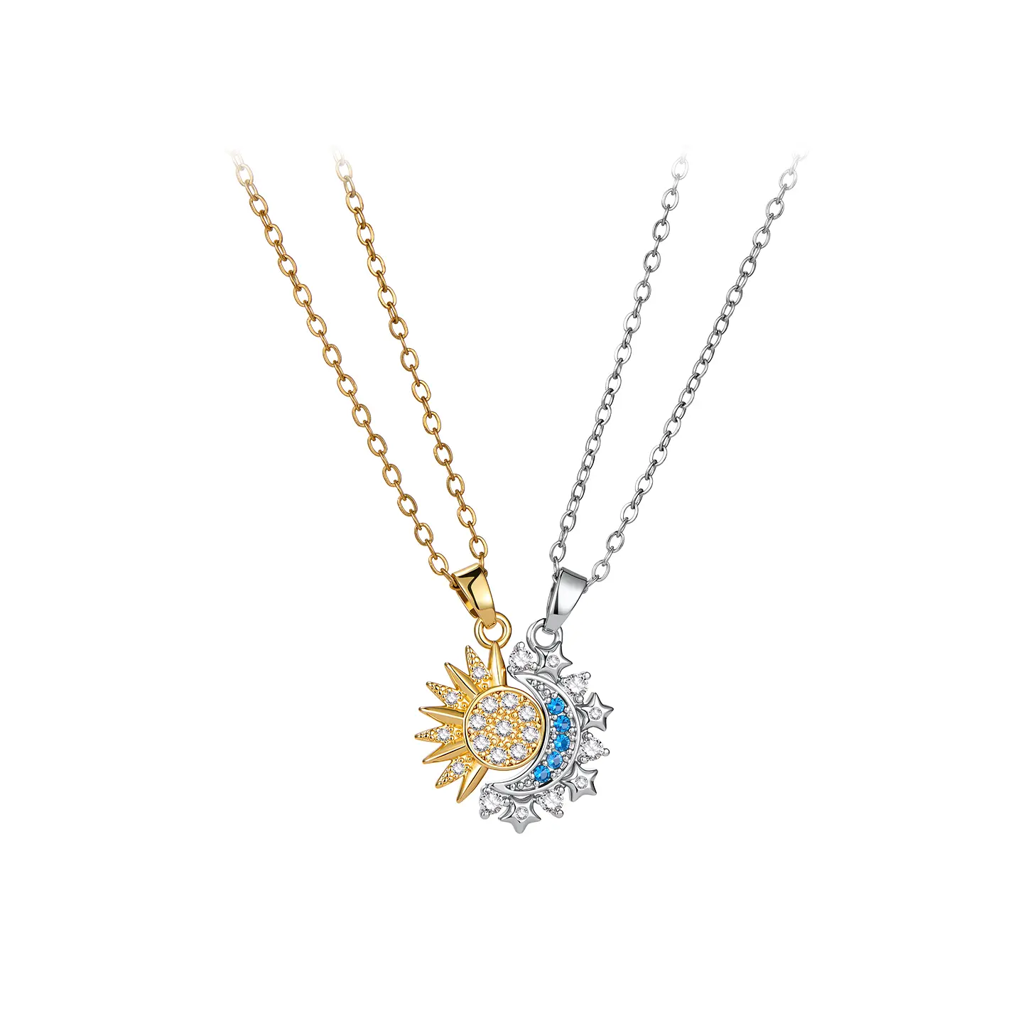 ZEGL 14K Gold Sun and Moon Matching Necklaces for Couples - Iced Out Celestial Pendant Set, Gold & Silver Plated Jewelry, Perfect Anniversary & Valentine's Day Gift for Soulmates & BFFs