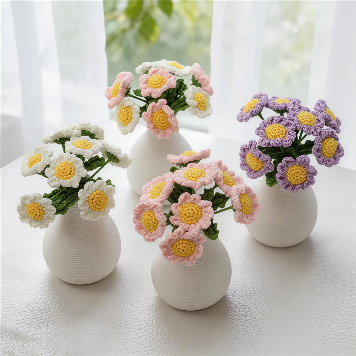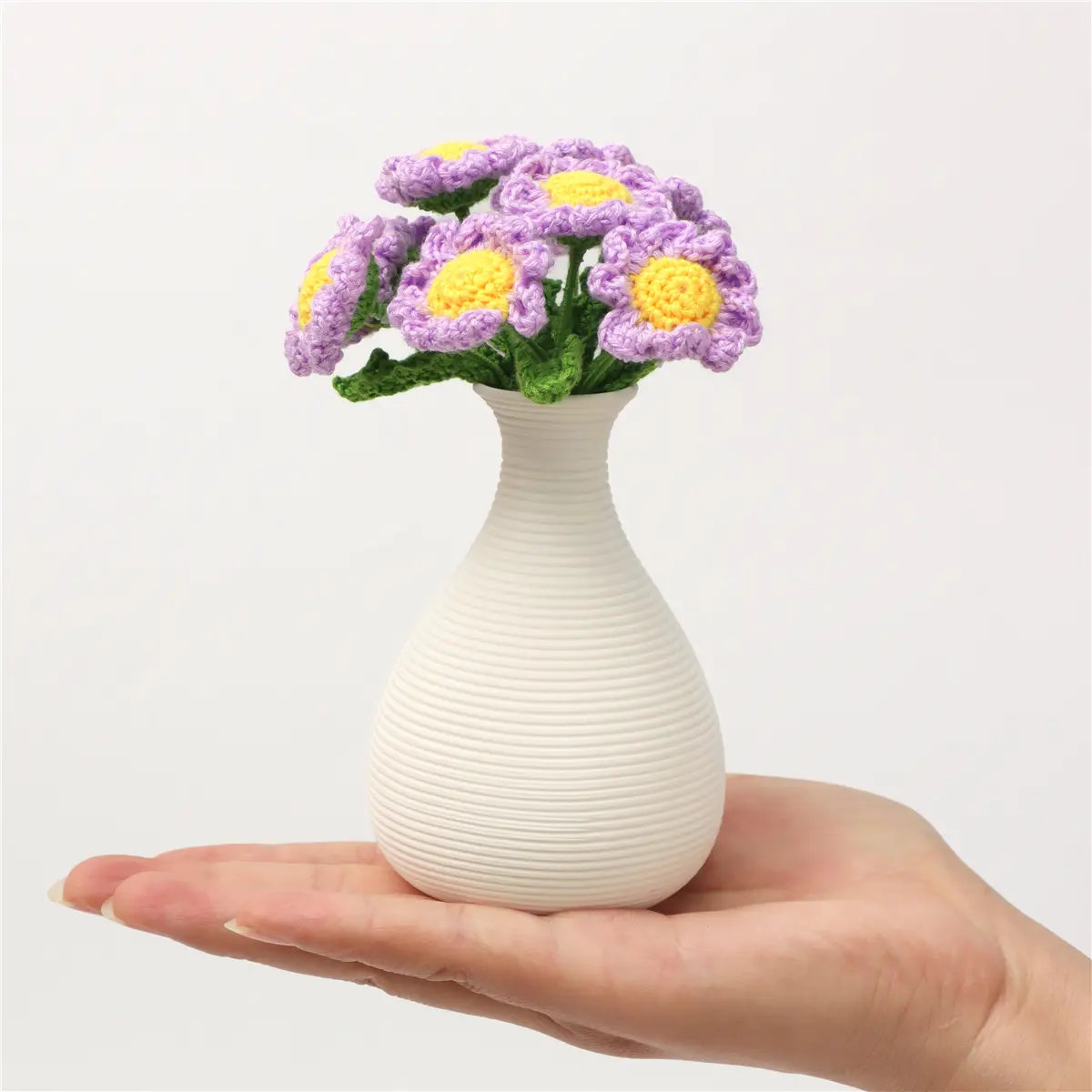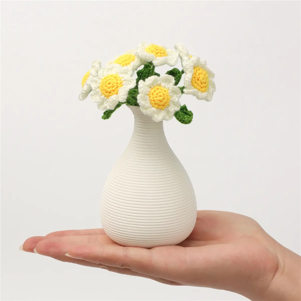 Mini Handmade Crochet Daisy with Ceramic Vase, Perfect for Table Decor, Home and Bedroom Decoration, Elegant Floral Accent