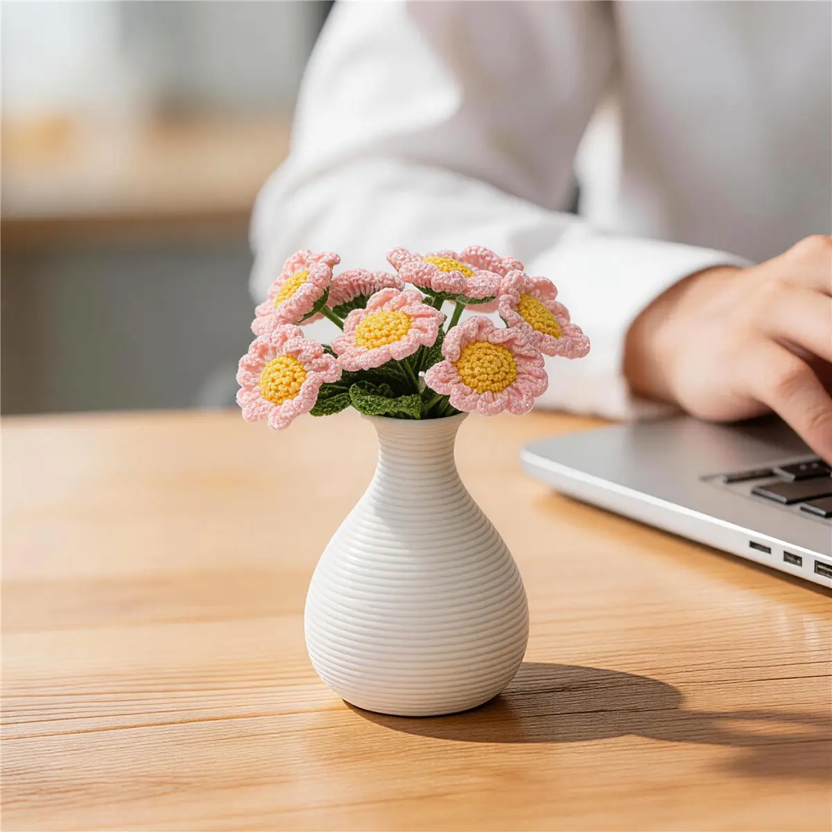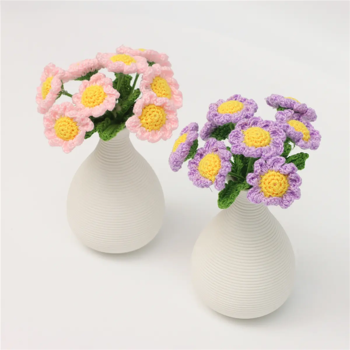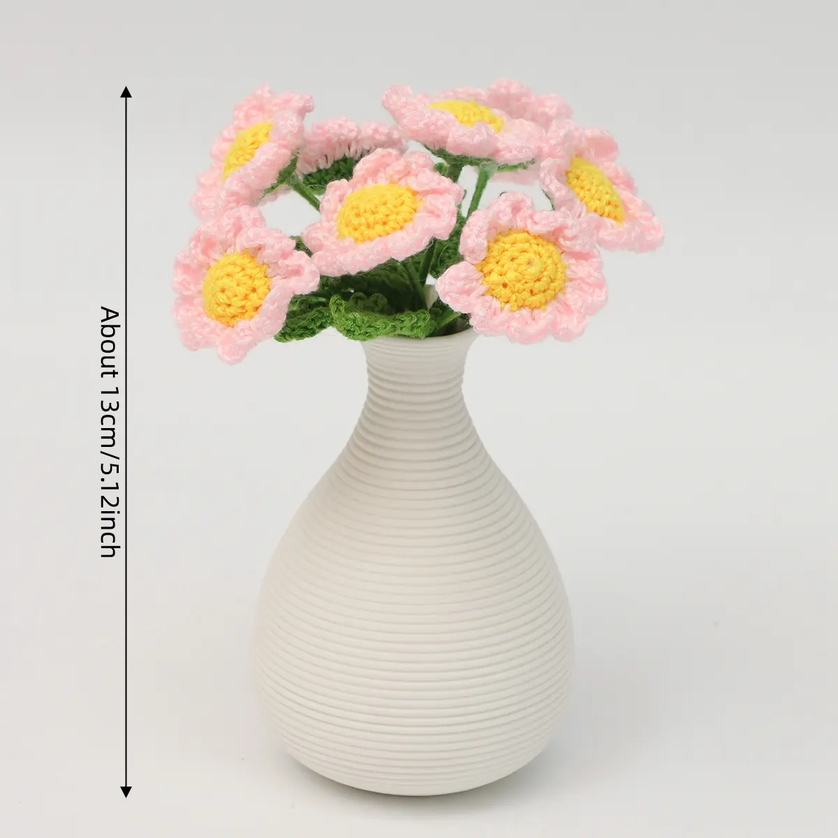 Mini Handmade Crochet Daisy with Ceramic Vase, Perfect for Table Decor, Home and Bedroom Decoration, Elegant Floral Accent