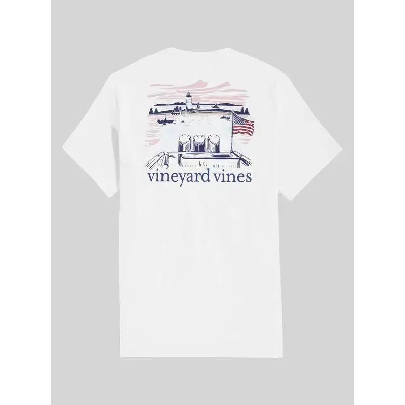 Men's Lighthouse & Vineyard Print Tee, Regular Fit Casual Short Sleeve Round Neck T-shirt for Summer, Men's Top for Daily Wear, Tropical