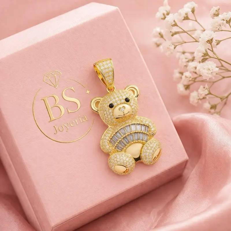 Gold Teddy Bear Pendant Stainless Steel No Chain