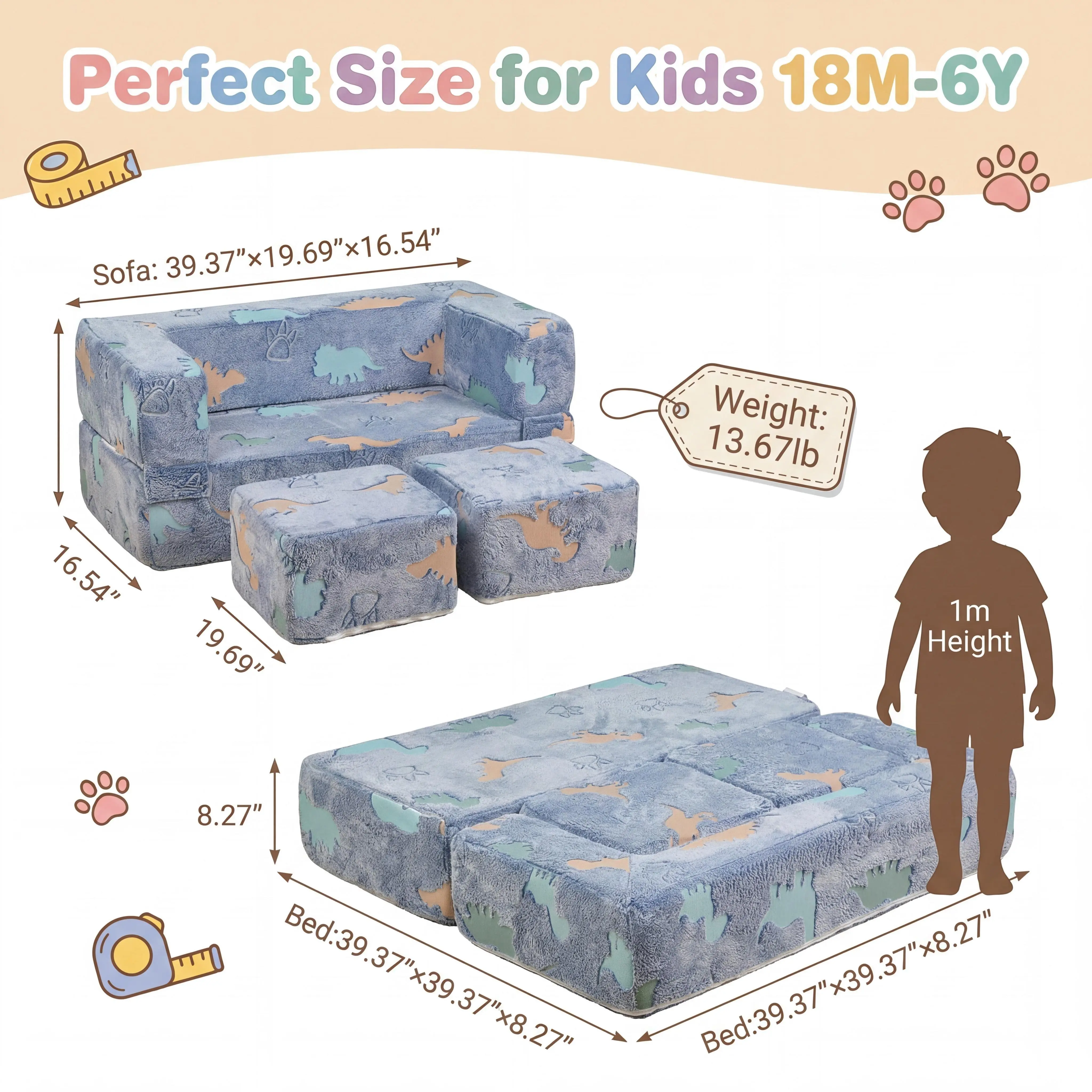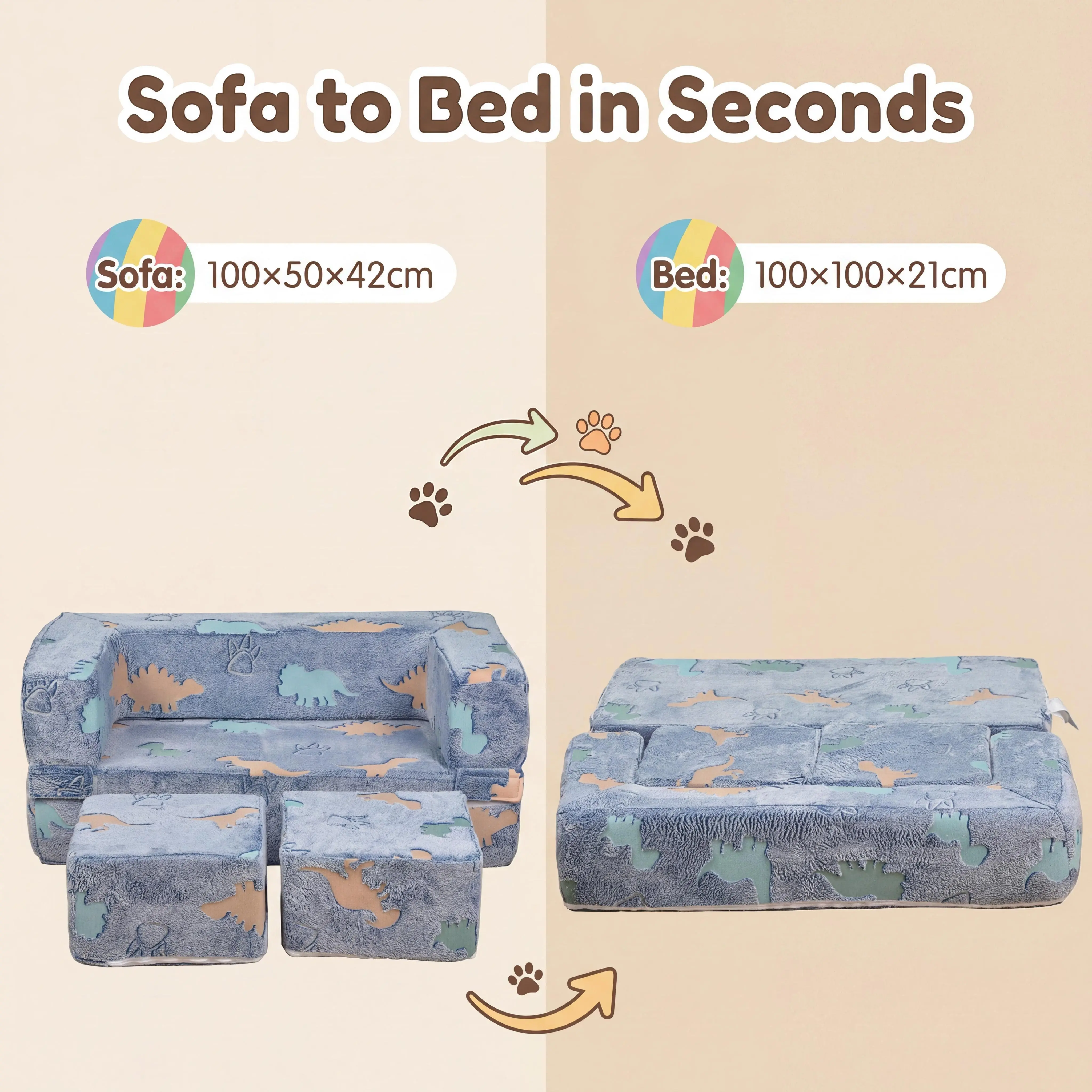 Gray dinosaur pattern, a child-friendly sofa for babies, a large folding sofa bed, easy to assemble and clean, suitable for living rooms and bedrooms. It can be transformed into a bed, making it a perfect birthday gift for both girls and boys