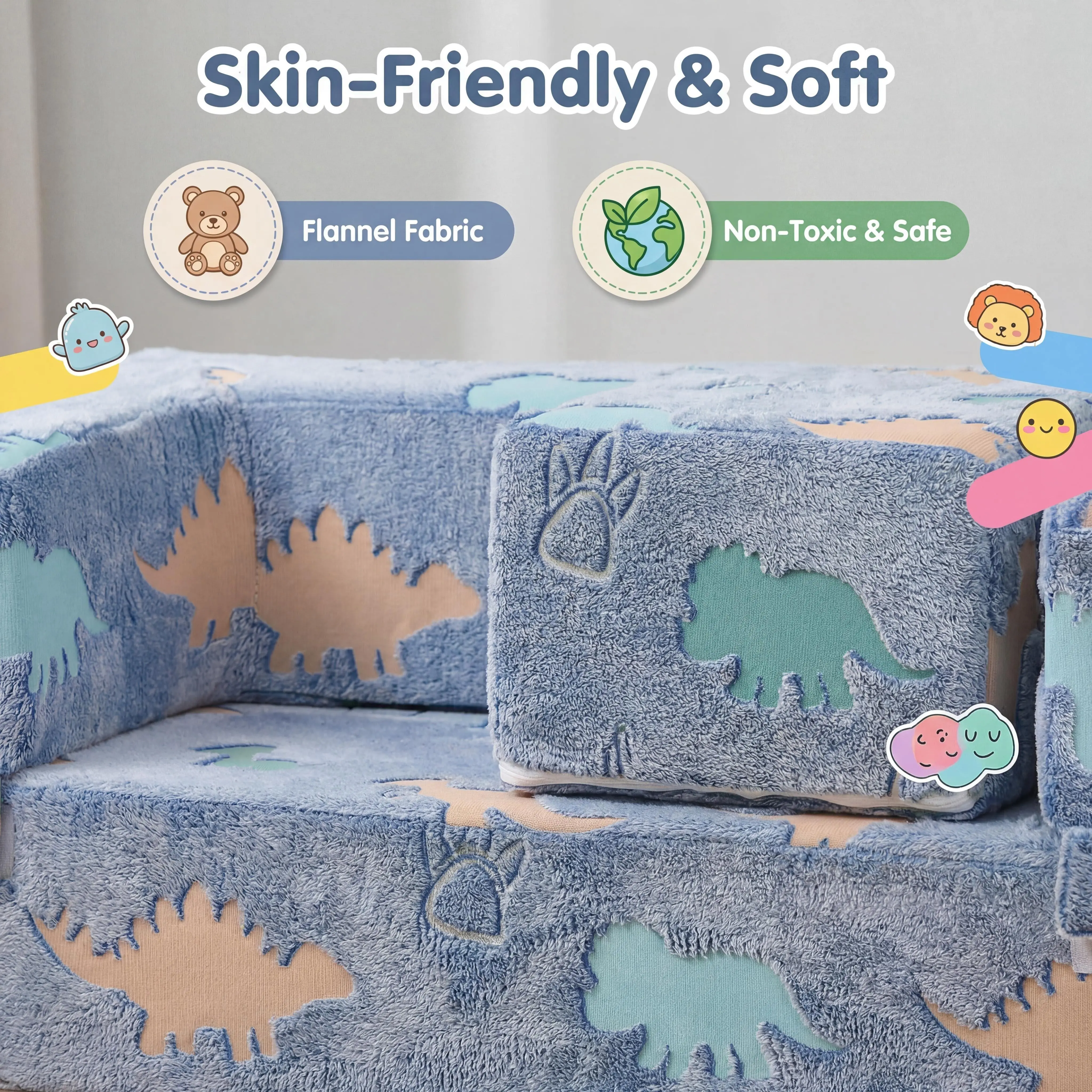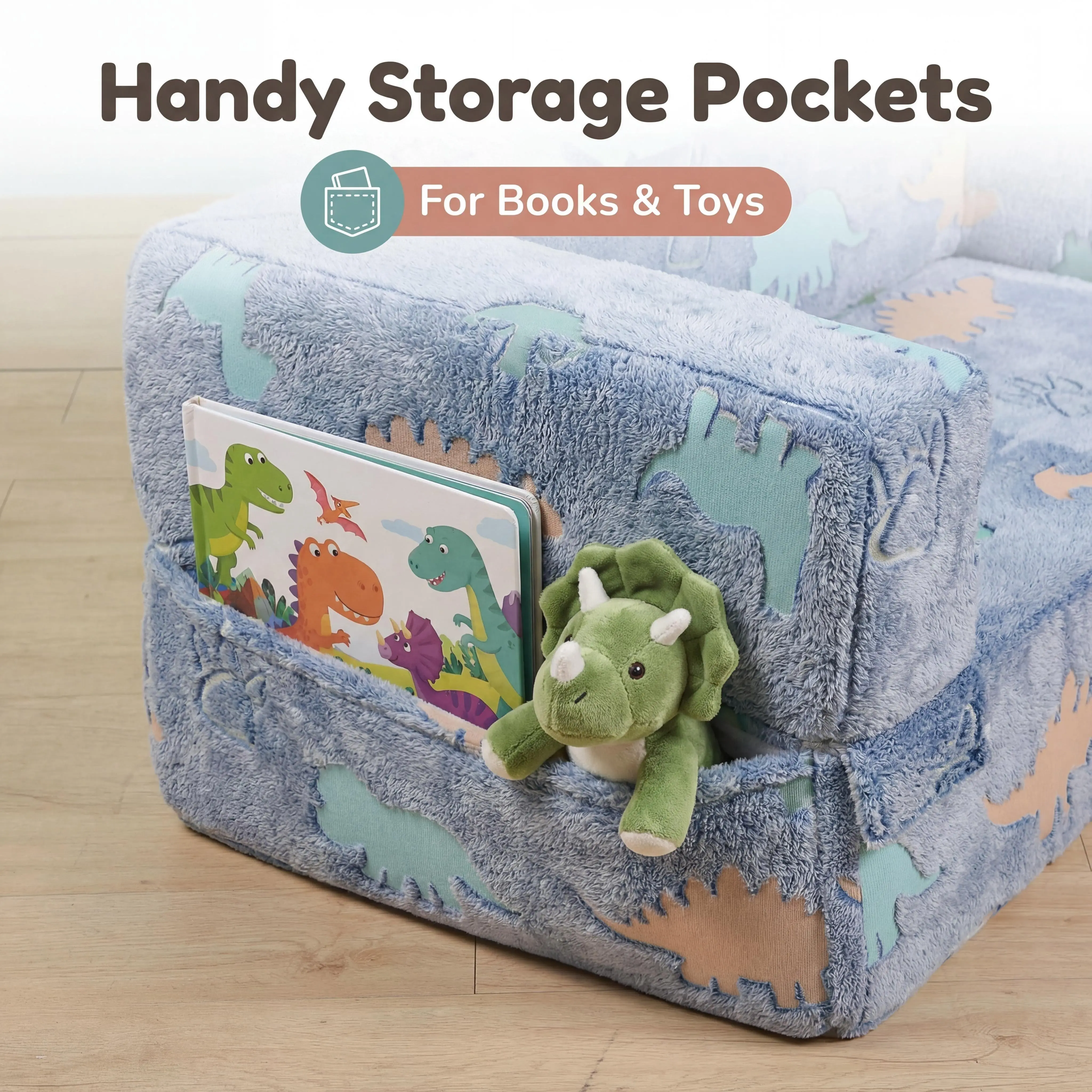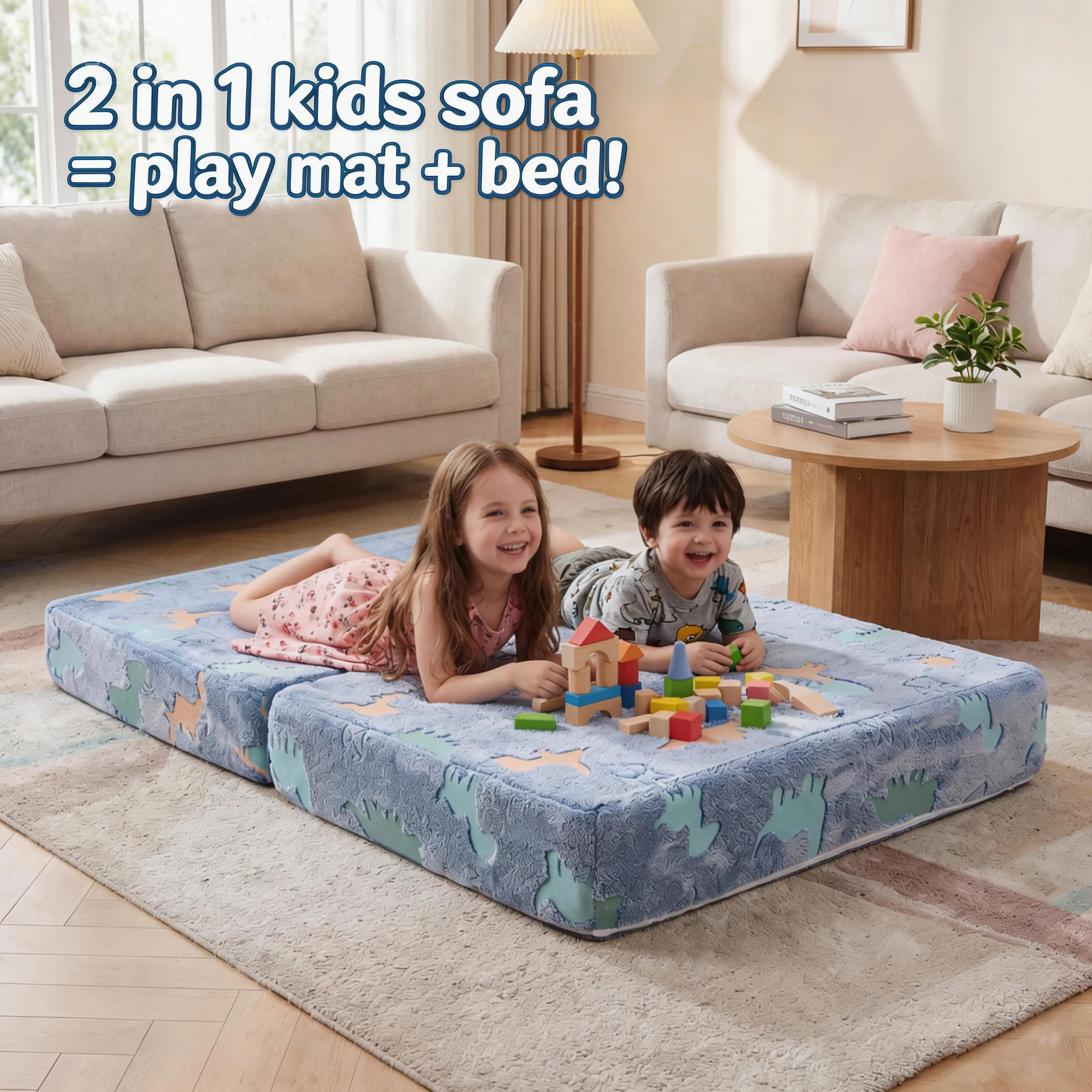 Blue dinosaur, a child-friendly sofa for babies, a large folding sofa bed, easy to assemble and clean, suitable for living rooms and bedrooms. It can be transformed into a bed, making it a perfect birthday gift for both girls and boys