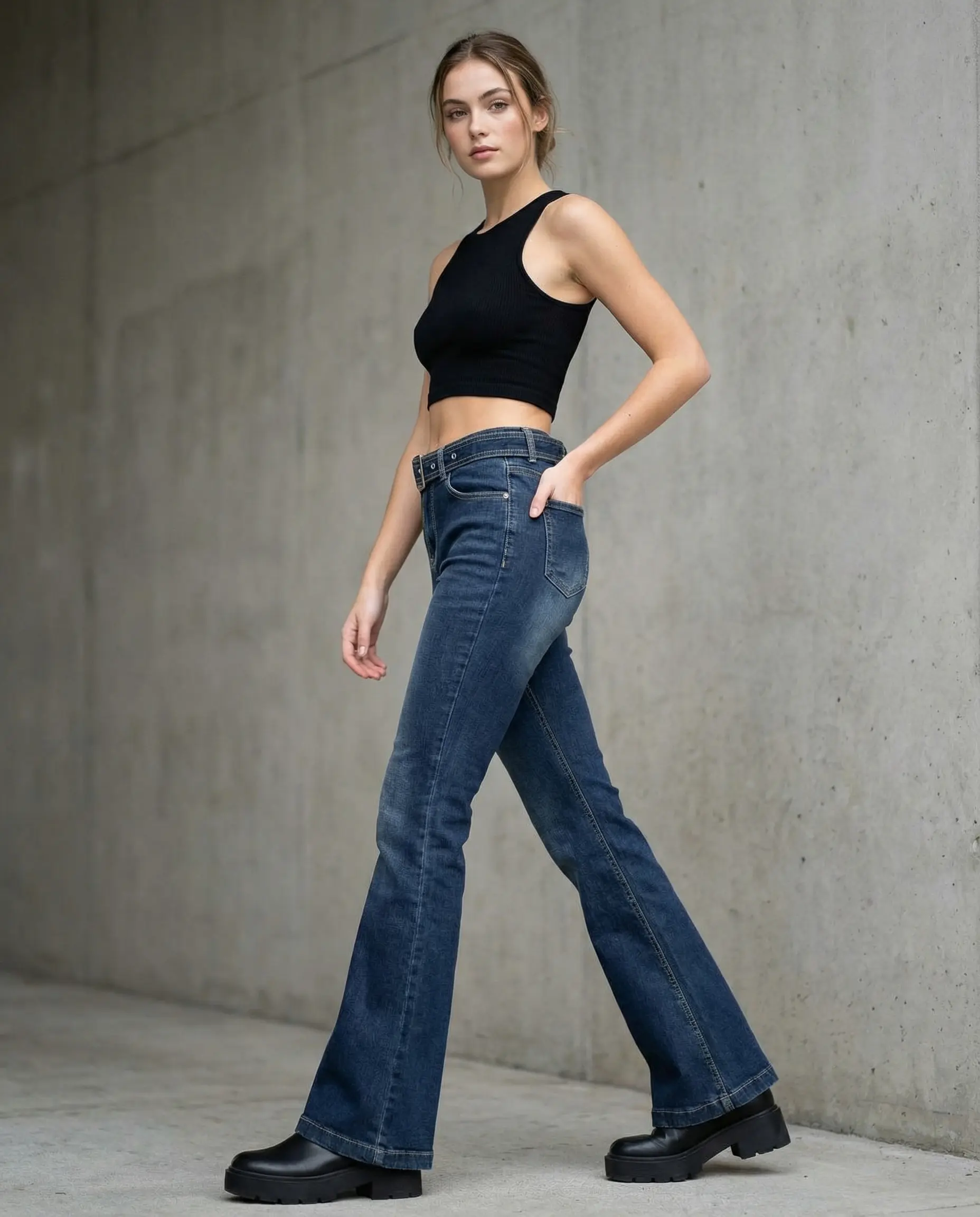 ✨ Elevate your streetwear game with these Women’s Flare Jeans Bell Bottoms. These stretchy, flattering dark wash denim pants are perfect for any casual outing. The bell bottom design adds a vintage grunge vibe, making them a standout piece. Pair them with a belt for a Y2K-inspired look. Ideal for alt and casual streetwear enthusiasts.