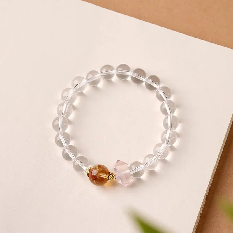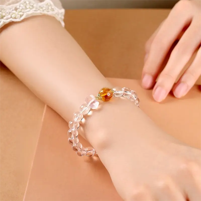 [Pure Spirit Realm] crystal bracelet, white crystal yellow citrine, unisex, daily wear gift, natural stone, clarity calm balance symbol