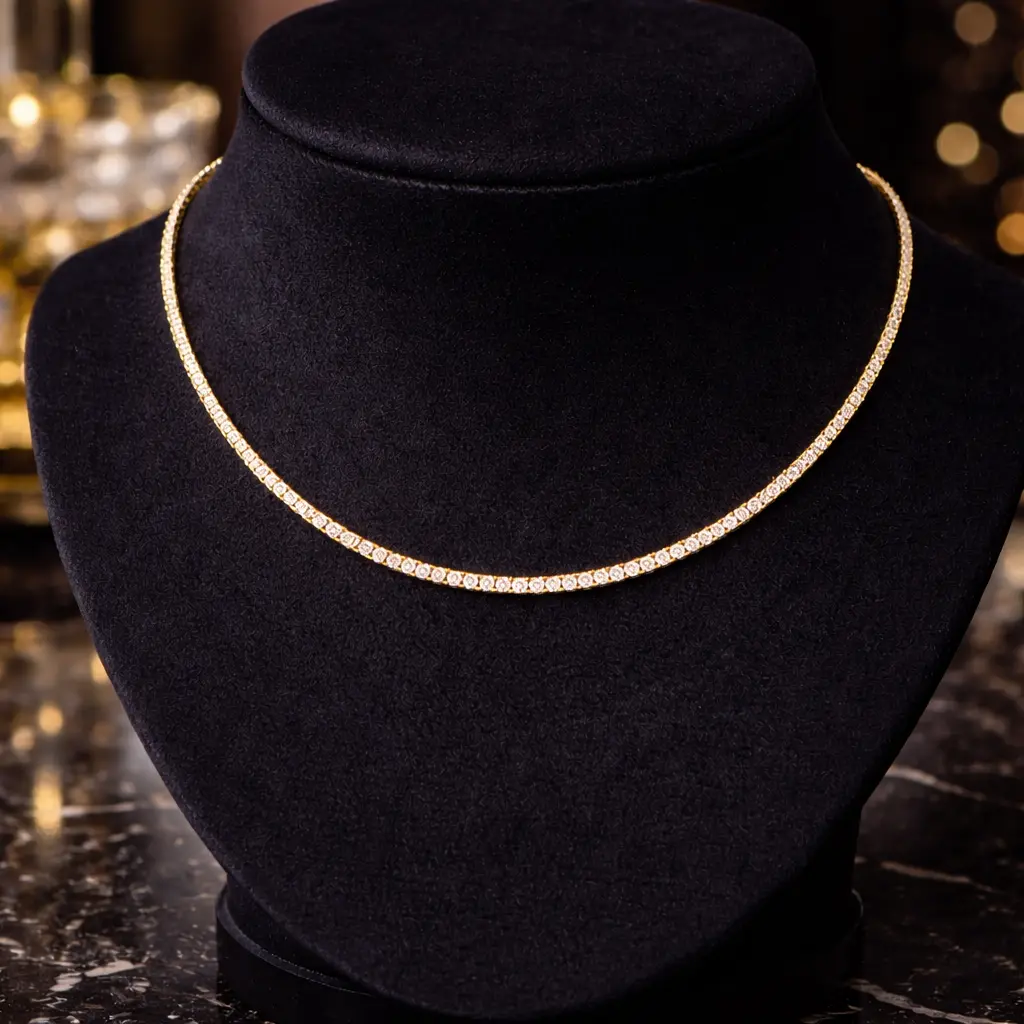 Elevate your style with this sleek and elegant 2mm micro tennis necklace from PrimoBling Jewelry. Designed for subtle luxury, this thin iced tennis chain features brilliant lab simulated diamonds set in a precision micro setting for maximum sparkle without the heavy look. The slim 2mm profile makes it perfect for layering or wearing alone for a clean, high-end finish.