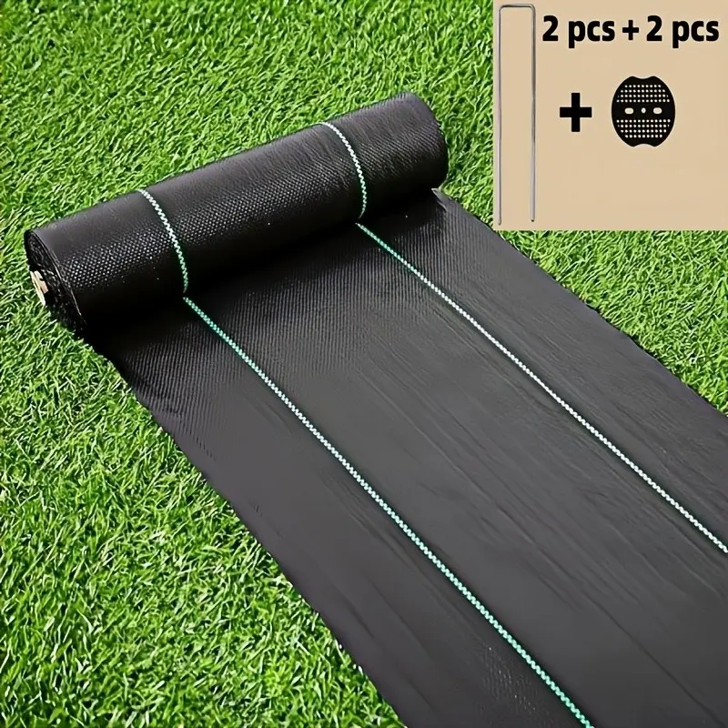 Pe Weed Control Fabric with Ground Staples and Padding, Water Permeable, Garden Lawn Care, One Roll Durable Landscape Cloth