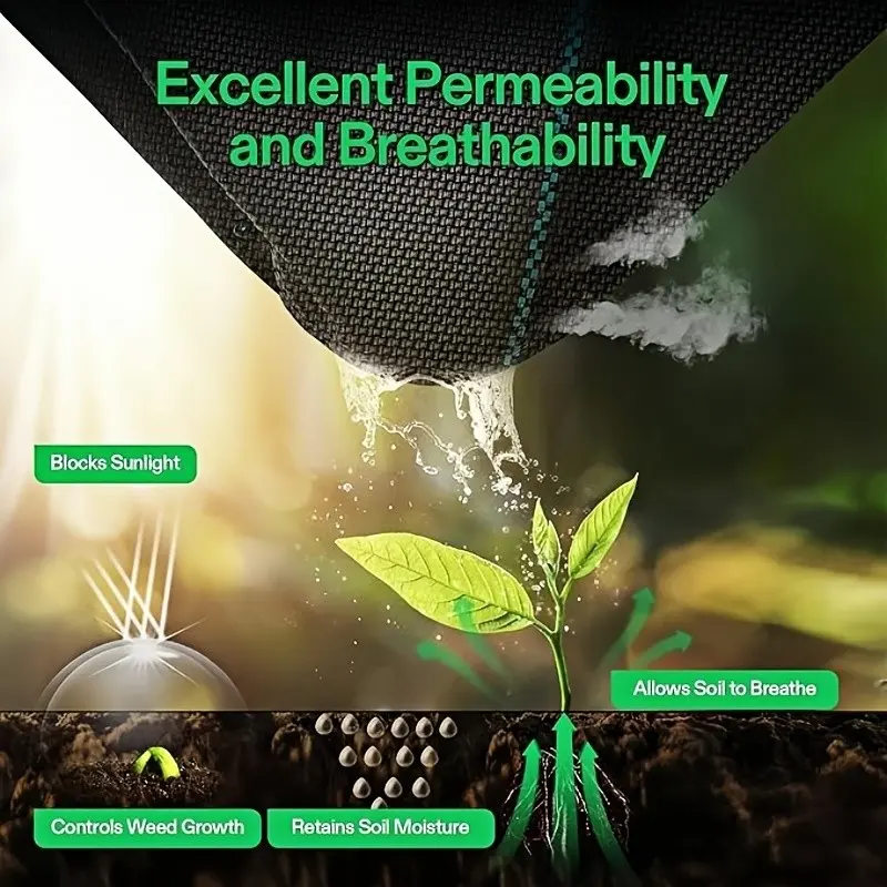 Gardening Weed Control Fabric, High Permeability Easy Installation, Ideal for Flower Beds, Vegetable Gardens, Fruit Trees