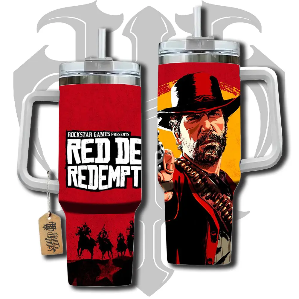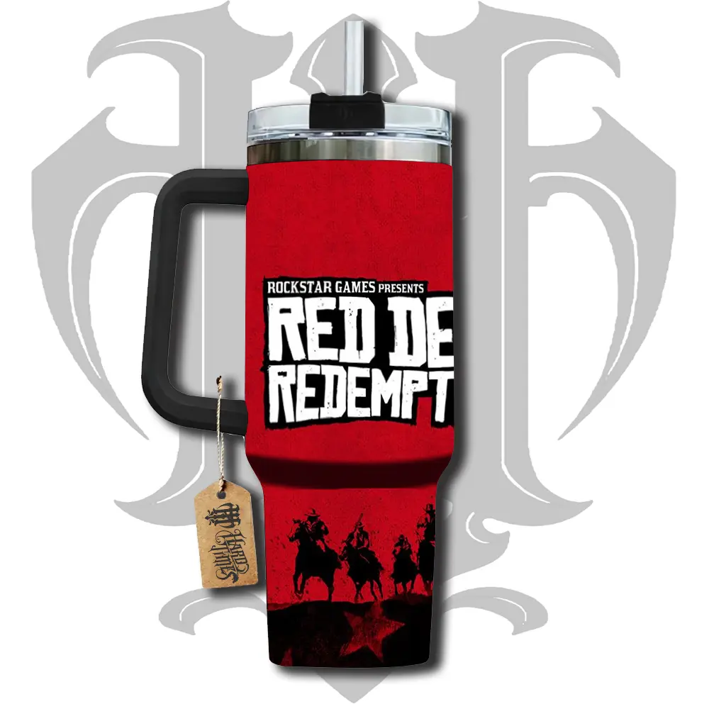 HardTimesMerch - Red Dead Redemption 2 #1 40oz Handle Tumbler Stainless Steel Travel Mug, Game Inspired Vacuum Insulated Cup, Large Iced Coffee Tumbler, Manga Fighter Drinkware, Gamer Gift for Him Her