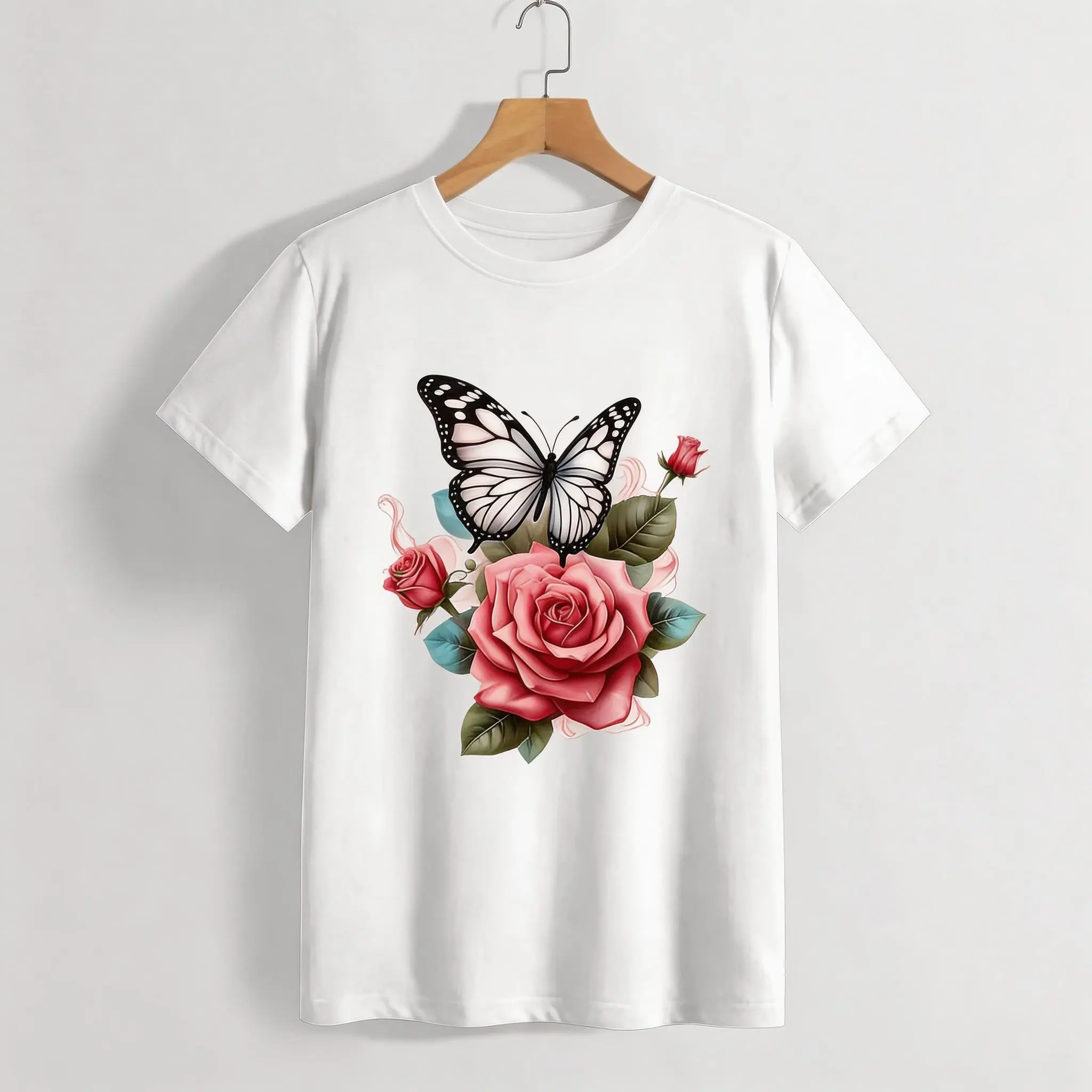 ·Design & Style: This crew neck t-shirt features a charming pink rose and green foliage design. Perfect for summer parties, it's versatile for all seasons. The soft, breathable fabric ensures comfort throughout the day. 🌸