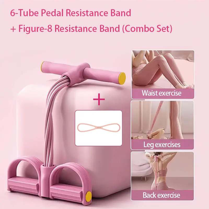 This set includes a 6-tube pedal resistance band and a figure 8 yoga pulling rope, providing a compact home fitness solution for full-body training. It works your arms, shoulders, back, core, legs and glutes, ideal for daily exercise, yoga and stretching.