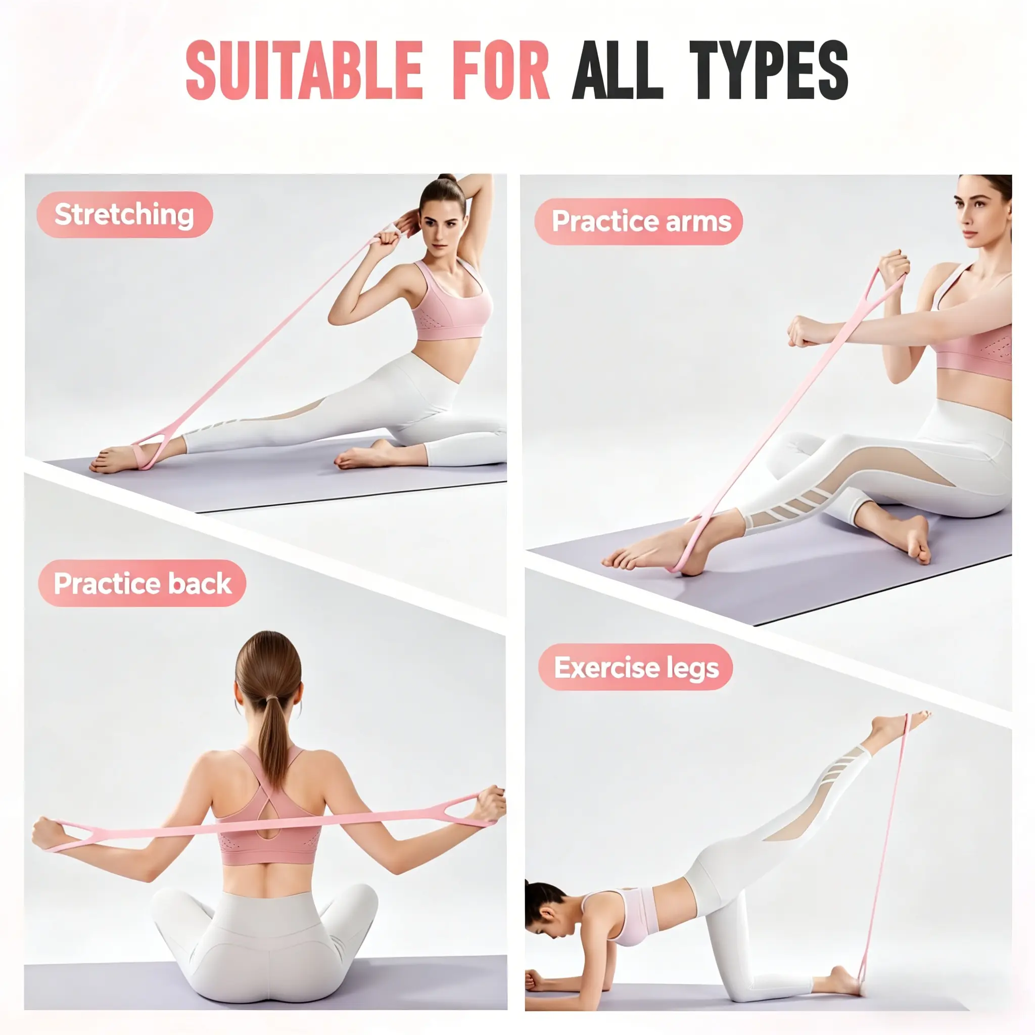The 6-strand resistance band with non-slip pedals offers stable support for core and leg training. The figure 8 band with soft anti-slip handles improves shoulder mobility and body flexibility. Both use elastic, tear-resistant material for long-term use.
