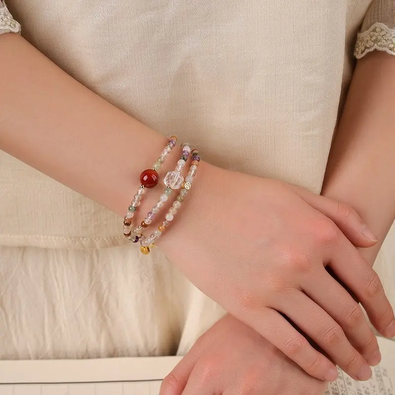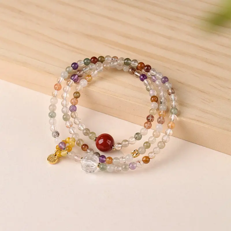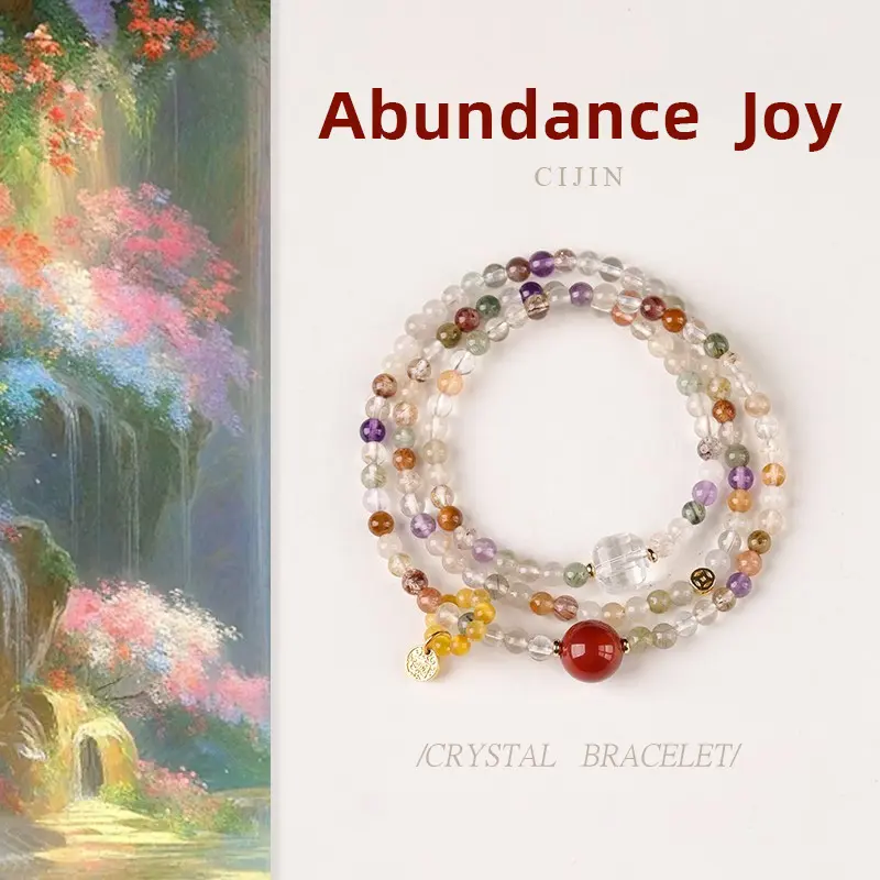 [Multi Treasure Blessing] crystal bracelet, black gold super seven white crystal golden tiger eye red agate, unisex, daily wear gift, natural stone mix, all round good luck wealth blessing symbol