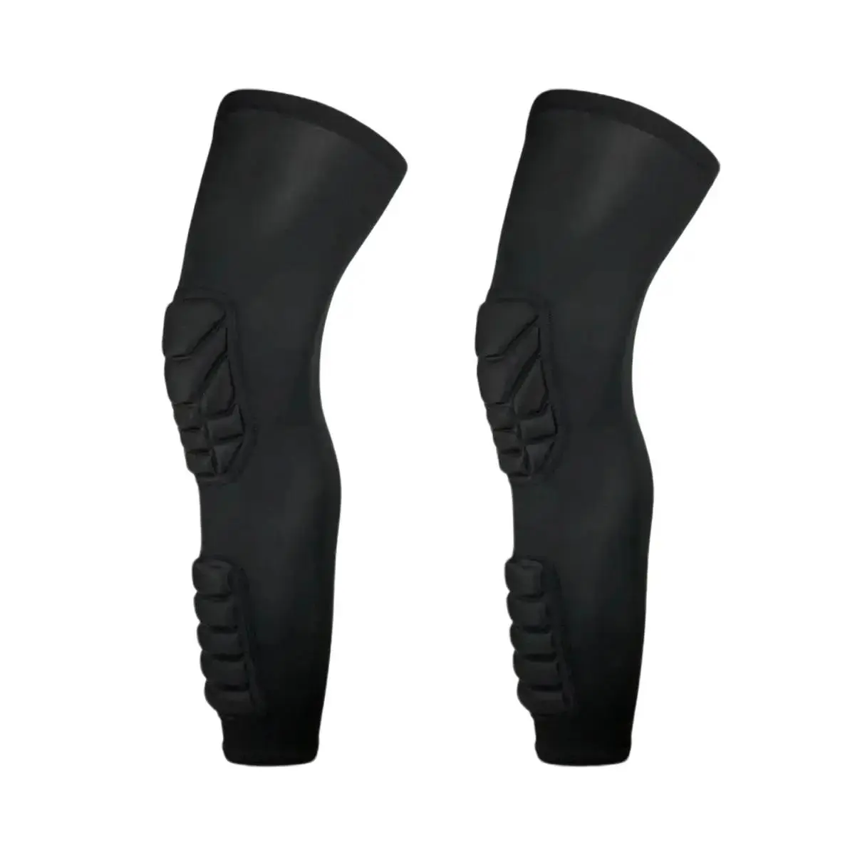Long leg knee sleeves with honeycomb padded design for all day comfort. Made of breathable and stretchy fabric, fits snugly without restricting movement. Extended length covers knee and calf for full coverage. Suitable for men and women, perfect for basketball cycling and other outdoor activities. Multiple sizes available for different body types. Easy to clean and maintain, ideal for daily use and outdoor adventures.