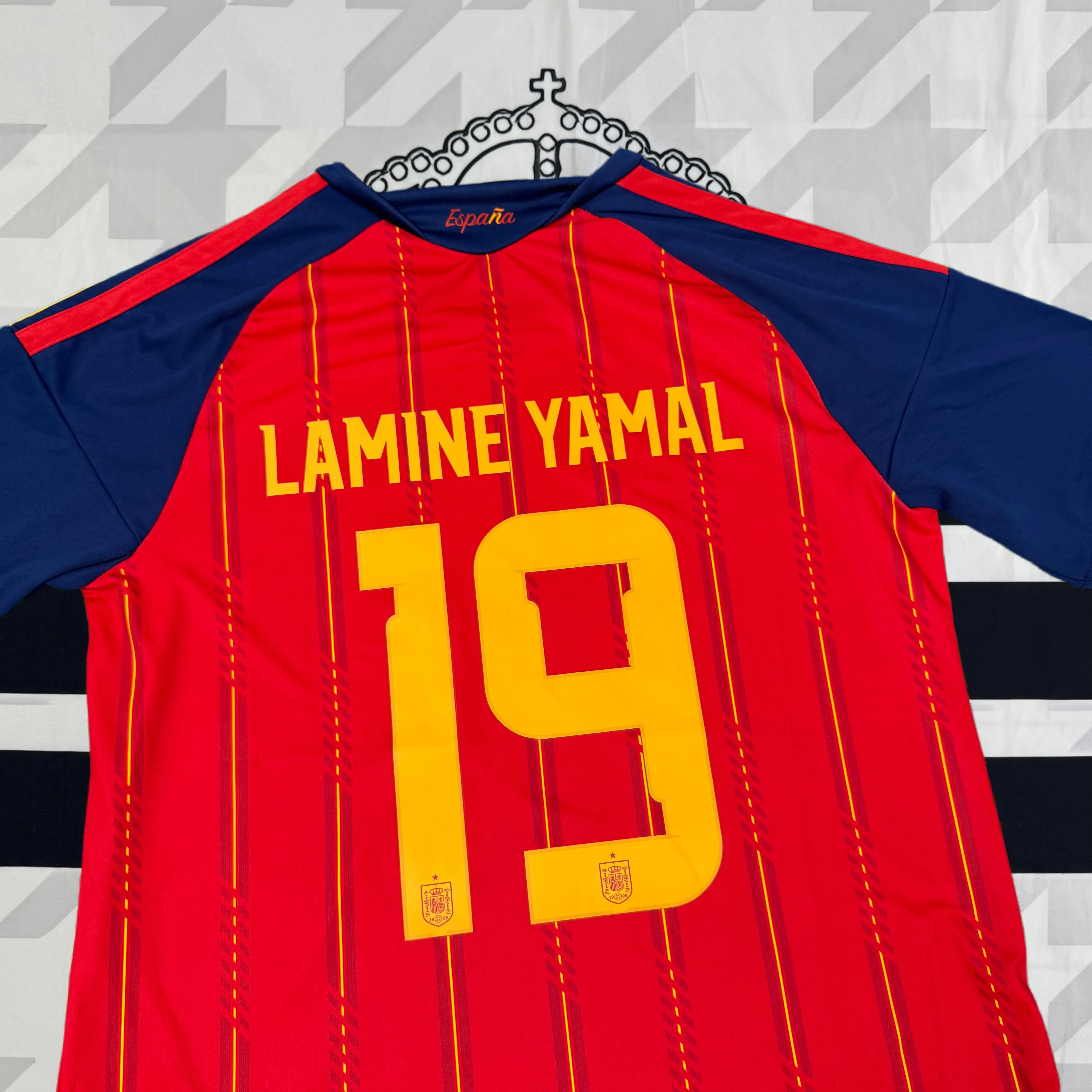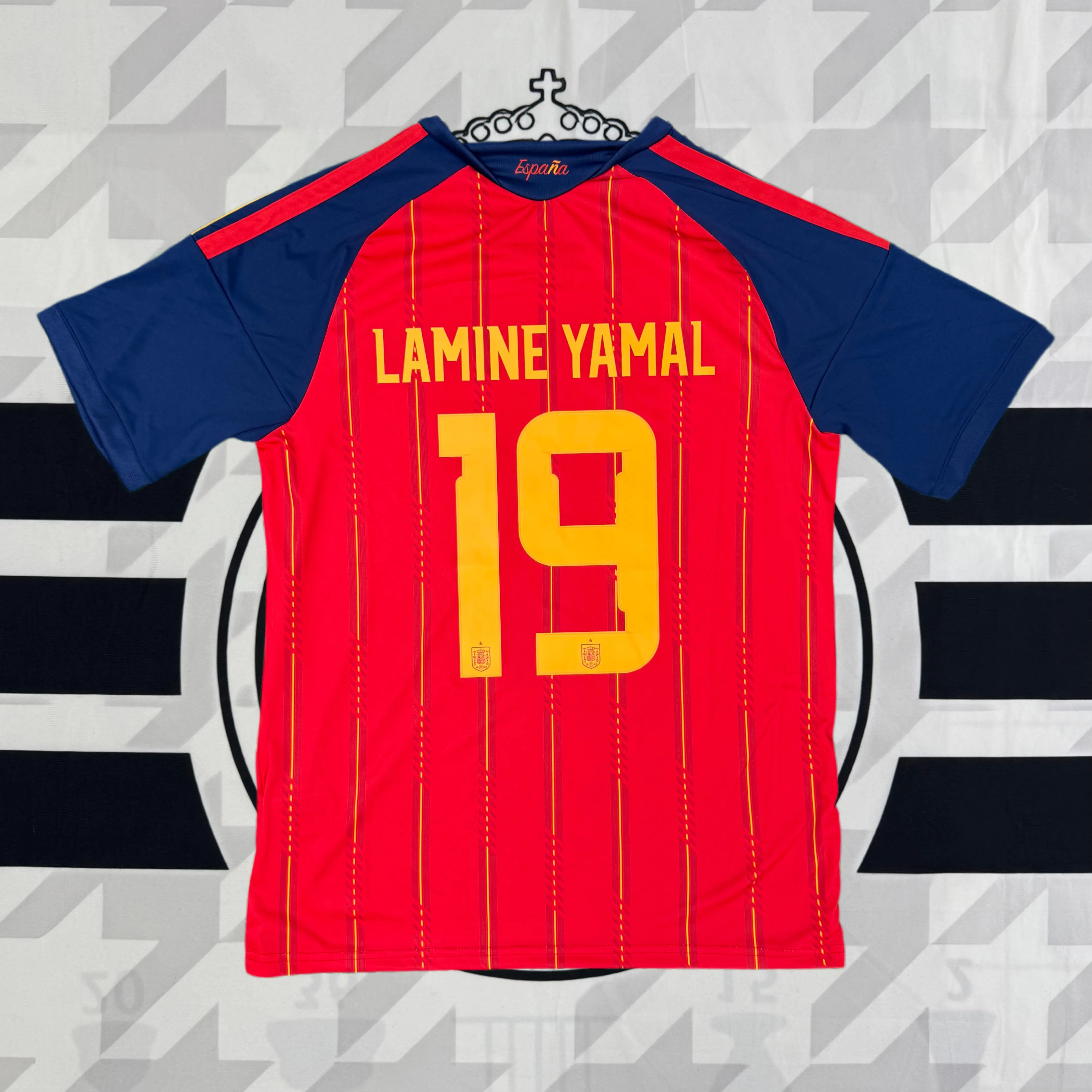 2026 World Cup Spain Home Red Blue No. 19 Lamine Yamal Short-Sleeved Football Shirt Soccer Jersey