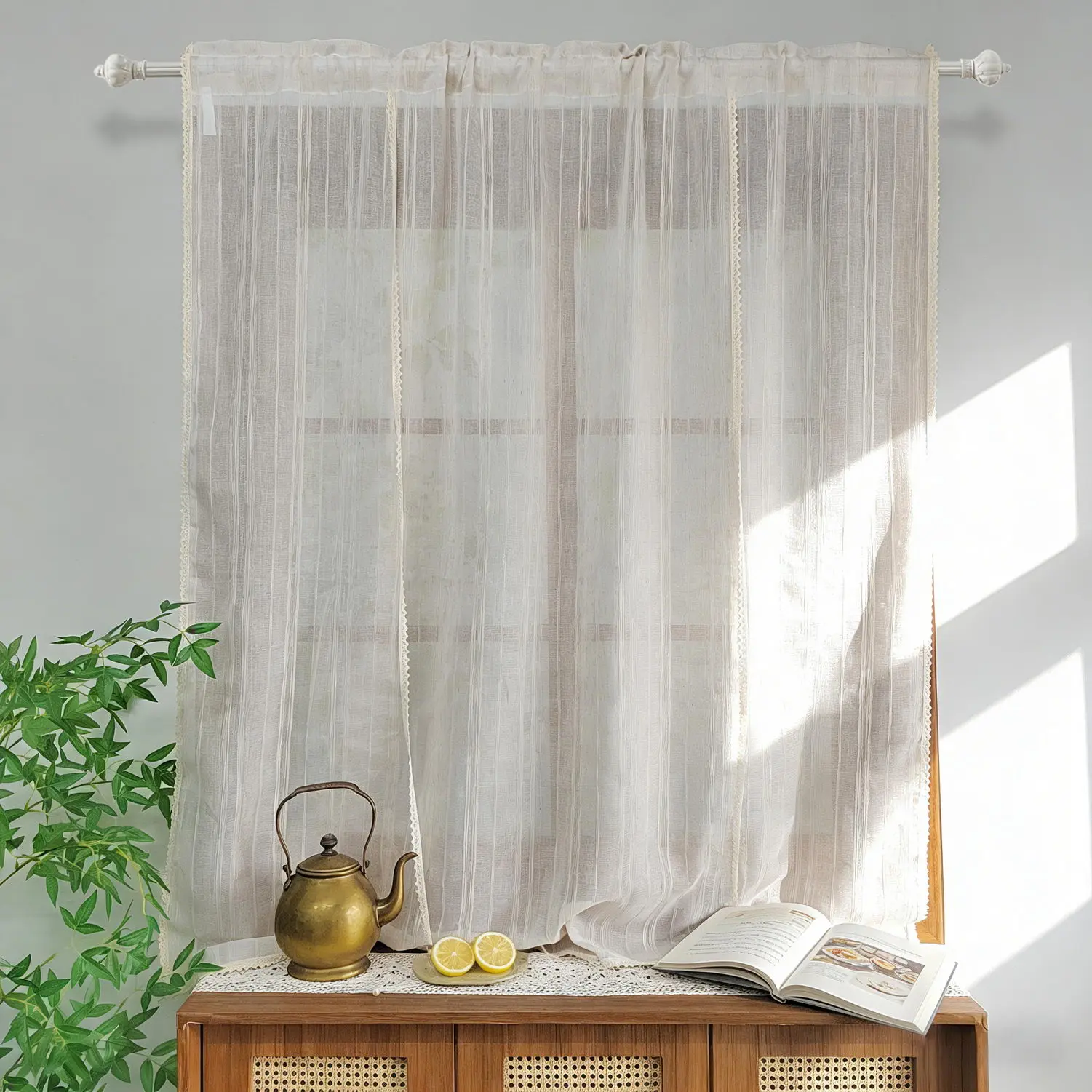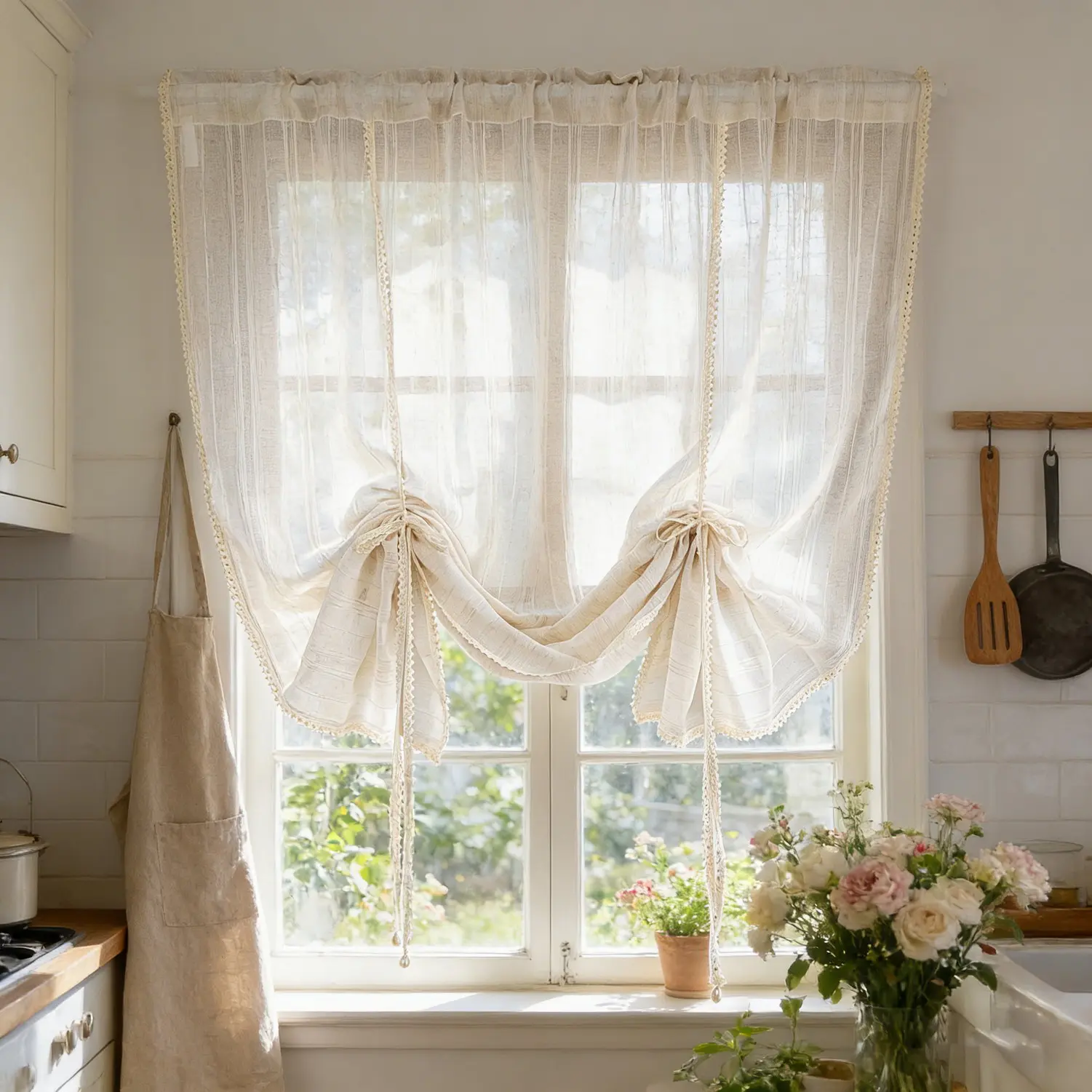 ·inen Striped Kitchen Valance Package: 1 order include 1 Panel Striped Balloon Sheer Curtain Valance . These farmhouse kitchen curtains are crafted from open weave linen blended fabric, primitive and natural effect make the panels more draped and aesthetic, formaldehyde-free and environment friendly.