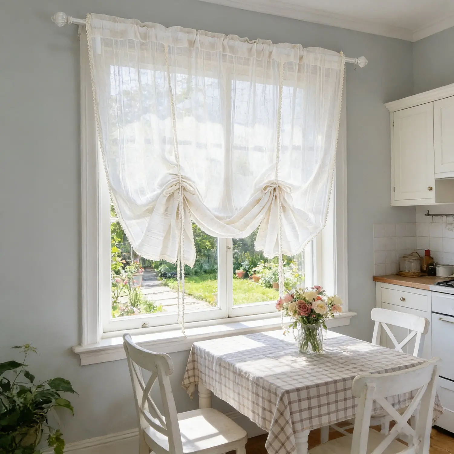 ·Light Filtering Valance: Our tie-up shade valance diffuse excessive light while offering some privacy, making it the elegant balloon shade valance. Enjoy the cozy time by enjoying the soft light inside. Lightweight & breathable fabric is suitable for use throughout the home.