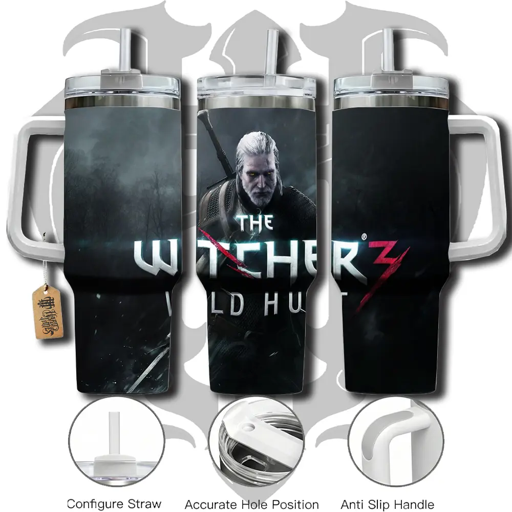 HardTimesMerch - The Witcher 3: Wild Hunt #1 40oz Handle Tumbler Stainless Steel Travel Mug, Game Inspired Vacuum Insulated Cup, Large Iced Coffee Tumbler, Manga Fighter Drinkware, Gamer Gift for Him Her