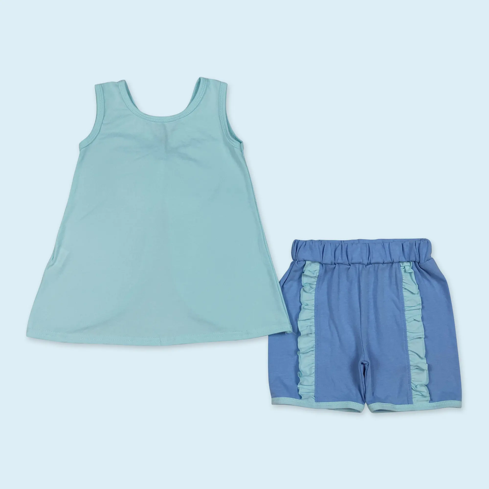 5. Sleeveless bow pink tunic light blue shorts girls summer outfits kids summer boutique clothes