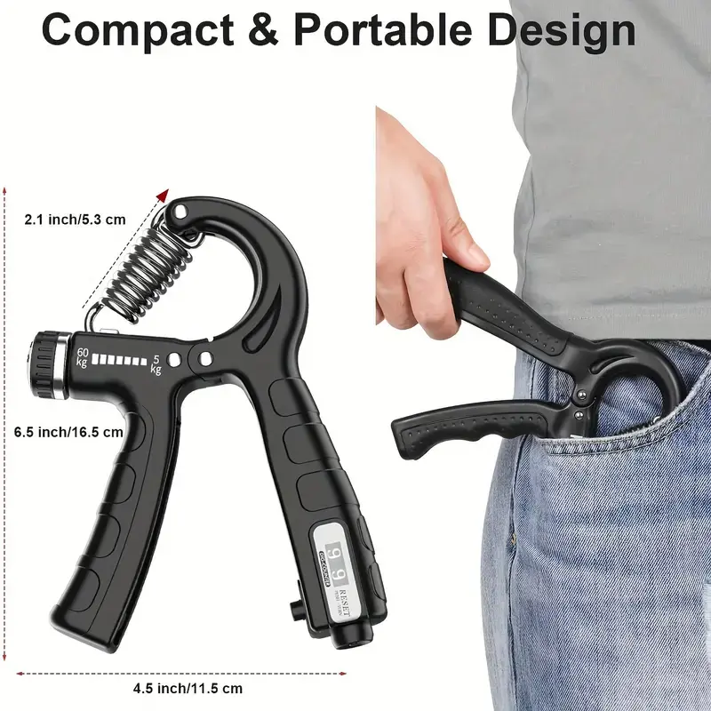 Enhance your grip strength with this versatile hand exerciser. Perfect for workouts, it offers a mechanical counter ranging from 5–60kg. Ideal for forearm grip training, it helps in building hand strength. Use it for various exercises to improve your overall hand and forearm strength.