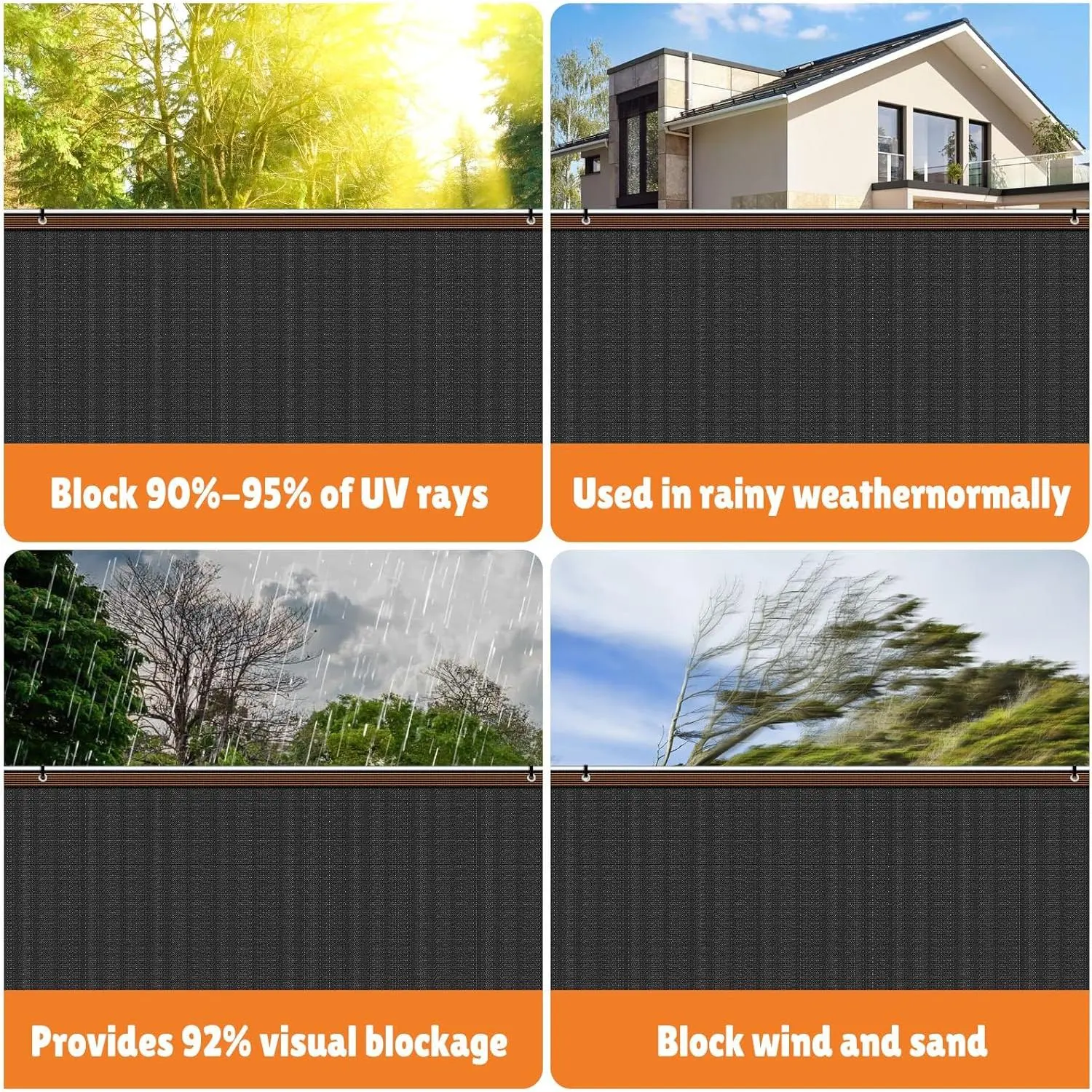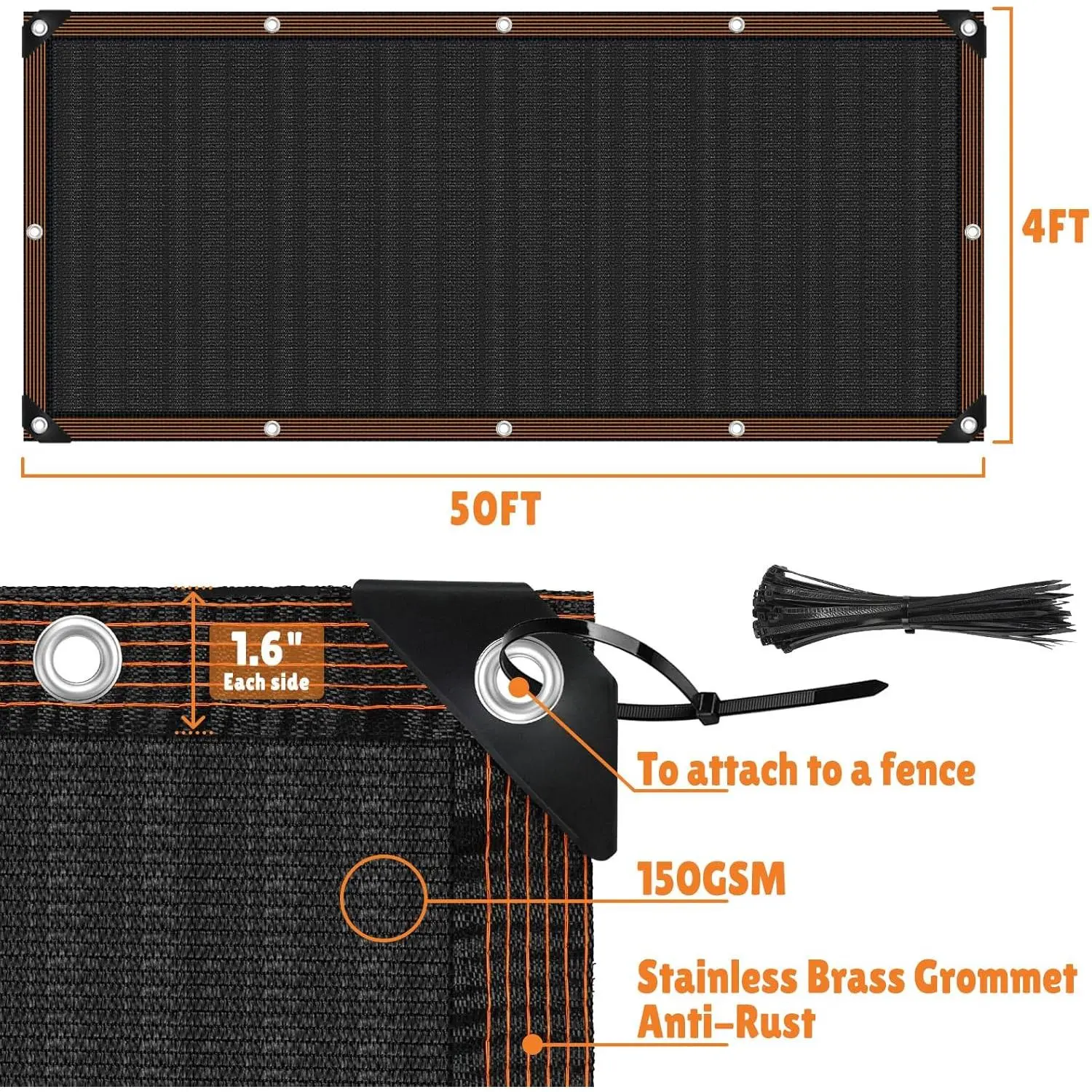 Privacy Fence Screen, 4'x50' UV-Resistant & Weatherproof: Crafted with privacy fence screen durability, this 4'x50' outdoor privacy screen withstands sun, rain, and wind without fading.Perfect for patio privacy, pool areas, or balcony privacy screen setups.Dense weave blocks 100% of prying eyes!Instant Privacy & Wind Protection for Backyards & Decks: Need privacy screen coverage fast?Our fence privacy screen installs in minutes!The reinforced grommets securely attach to fences, poles, or railings-ideal for patio privacy screen needs or creating secluded garden zonesMulti-Purpose Outdoor Privacy Screen, Easy to Customize: Use as a standalone privacy fence or layer over chain-link fences.The 4'x50' size adapts to decks, balcony privacy screen gaps, or RV parks.Cut to fit without fraying-no tools needed!Eco-Friendly & Low-Maintenance Design: This outdoor privacy screen is made from recyclable polyethylene, resisting stains.Simply rinse with water-perfect for high-humidity areas like poolside patio privacy zones or balcony privacy screen setupsSatisfaction Guaranteed with 1-Year Warranty: Confidently upgrade your privacy fence! We back our privacy screen with reliable support and hassle-free returns. Love your renewed patio privacy or balcony retreat, or we’ll make it right!