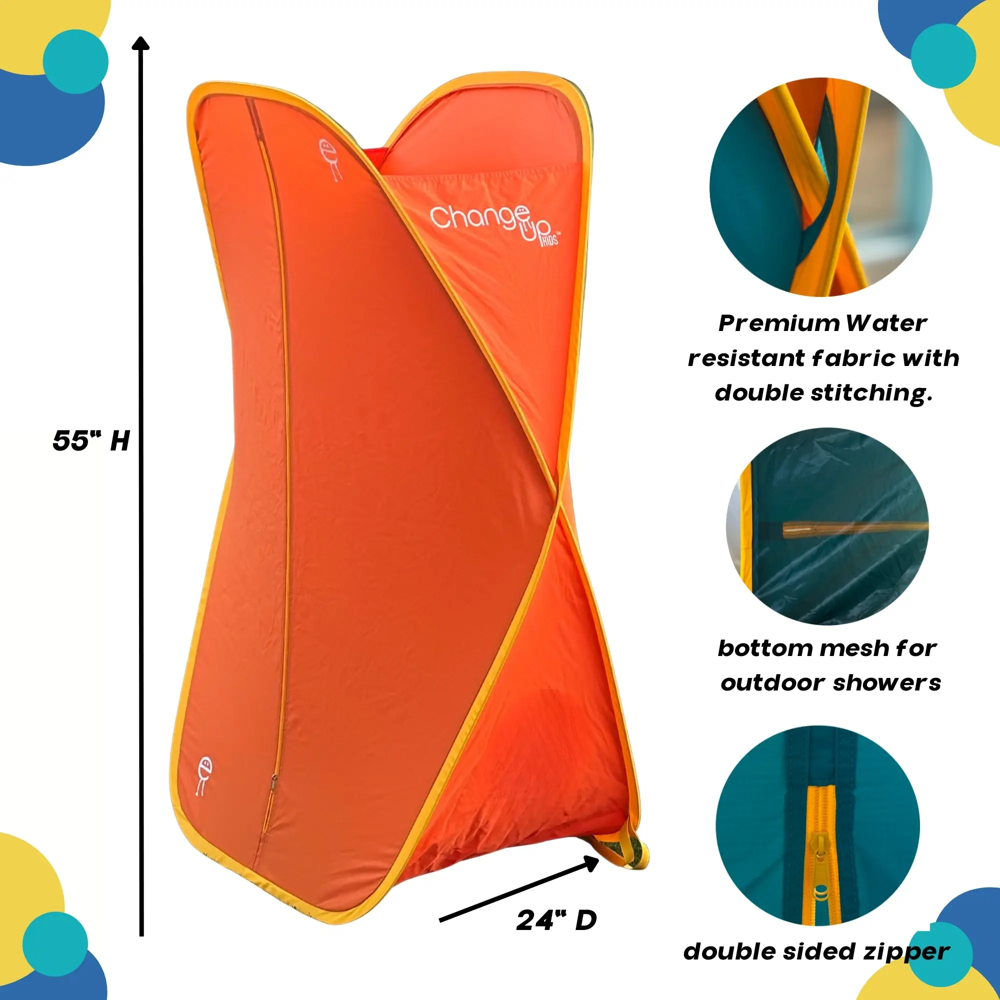 Meet the NEW 55" Change Up Kids, the tallest and most spacious version of our bestselling portable changing room. Designed with the California sunset in mind this pop-up changing room gives kids (and even adults!) instant privacy wherever adventure takes them.